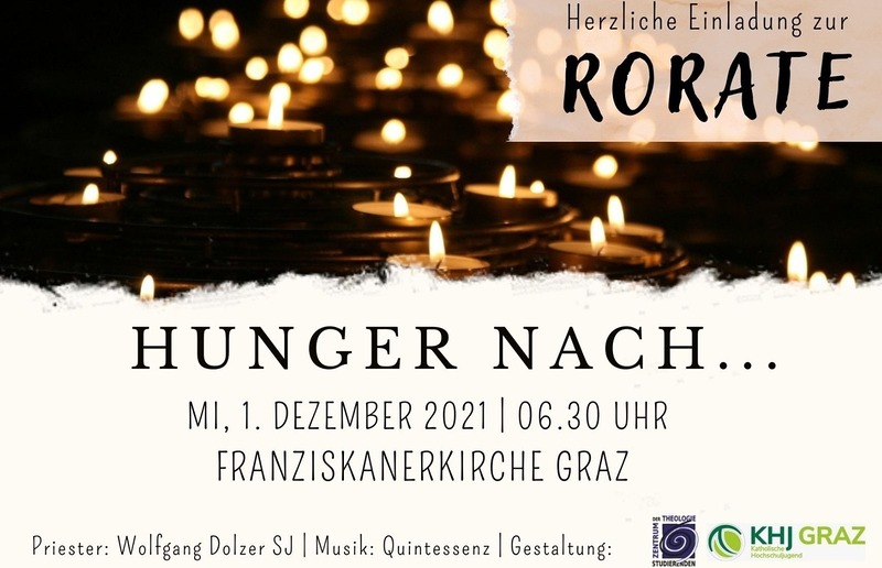 Das Organisationsteam des TheoZentrums und der KHJ lädt sehr herzlich zur ersten Rorate im Advent ein. Wir freuen uns sehr, dass wir gemeinsam in der Franziskanerkirche feiern können.