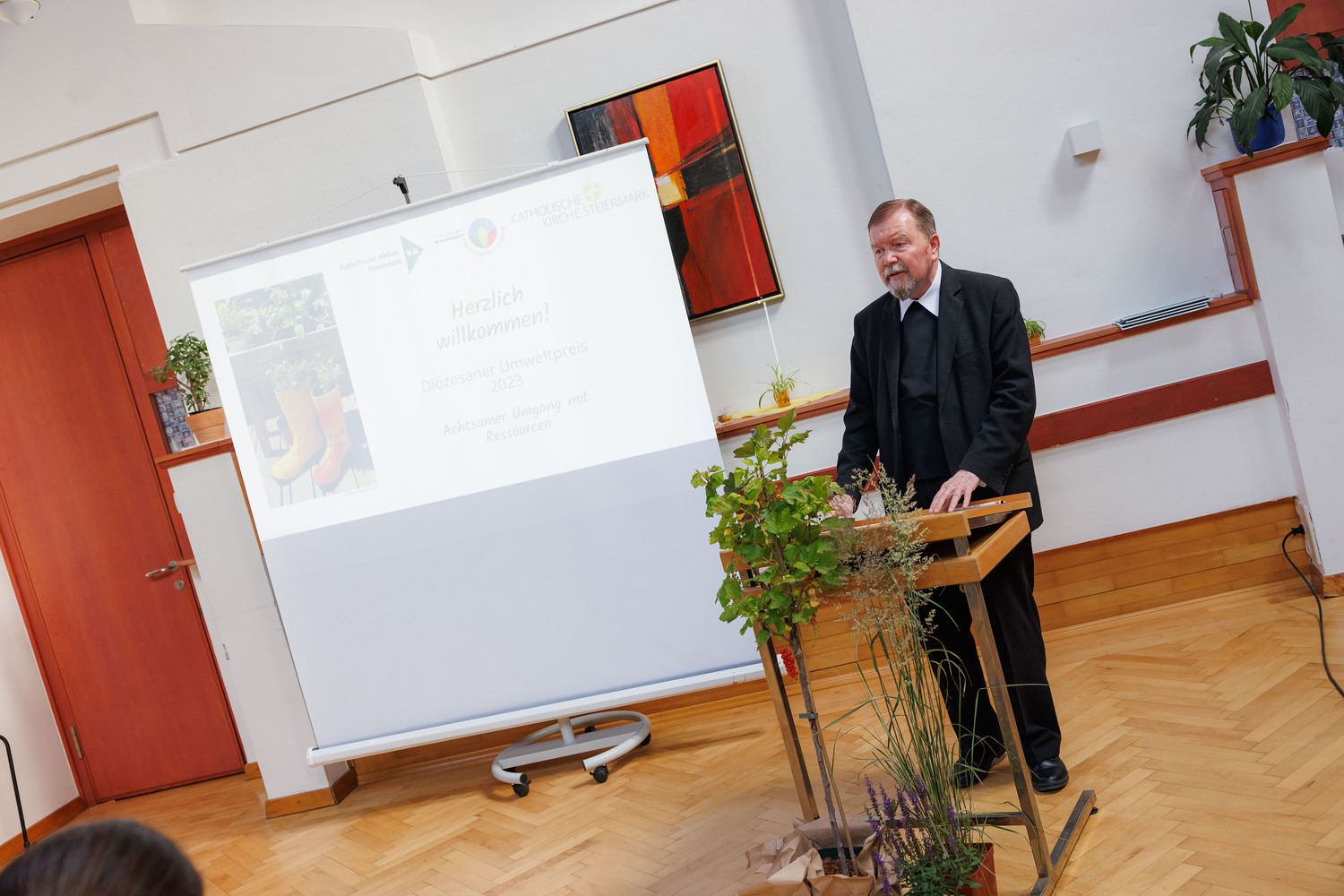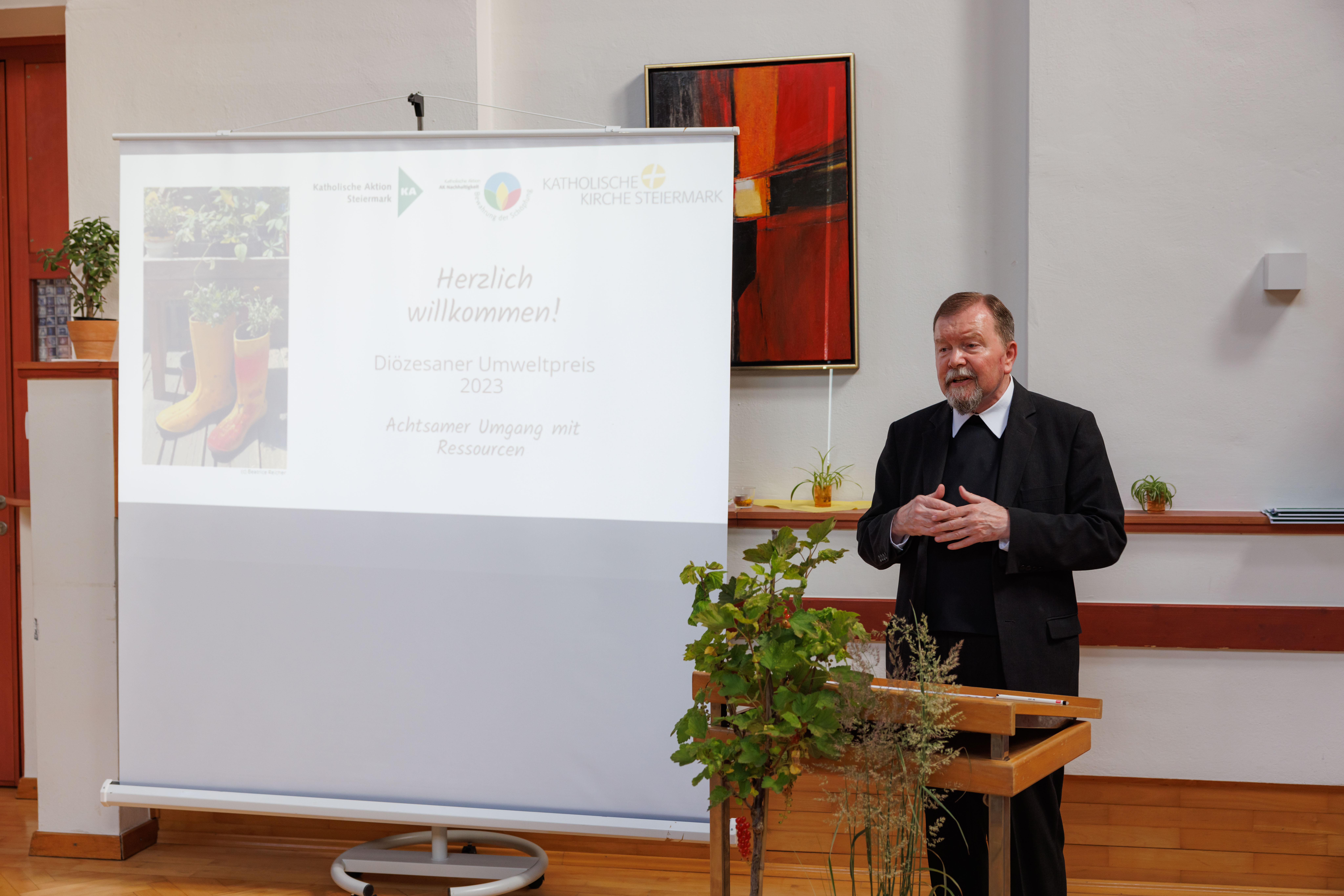 Generalvikar Dr. Erich Linhardt unterstrich gleich zu Beginn „die christliche Haltung, die uns Antrieb sein muss, das Geschenk der Schöpfung mit Dankbarkeit zu behandeln“. KA-Präsident Andreas Gjecaj betonte den hohen Stellenwert, den die Umweltarbeit auch innerhalb der Katholischen Aktion, vertreten durch den Arbeitskreises Nachhaltigkeit, hat.