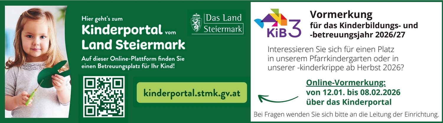 Die Vormerkungen für das neue Kinderbildungs- und betreuungsjahr 2026/27 finden ab Mitte Jänner 2026 ausschließlich online im Kinderportal des Landes Steiermark statt.