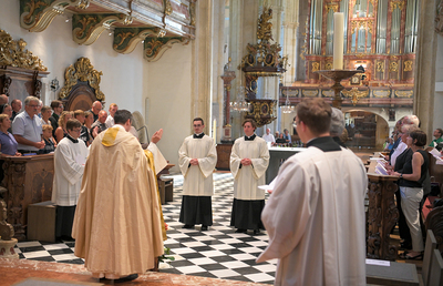 Im Auftrag von Diözesanbischof Wilhelm Krautwaschl hat Regens Thorsten Schreiber am Samstag, 6. Juli 2024, zwei Kandidaten in den Kreis der Weihekandiaten aufgenommen: Thomas Lang und Lukas Weissensteiner