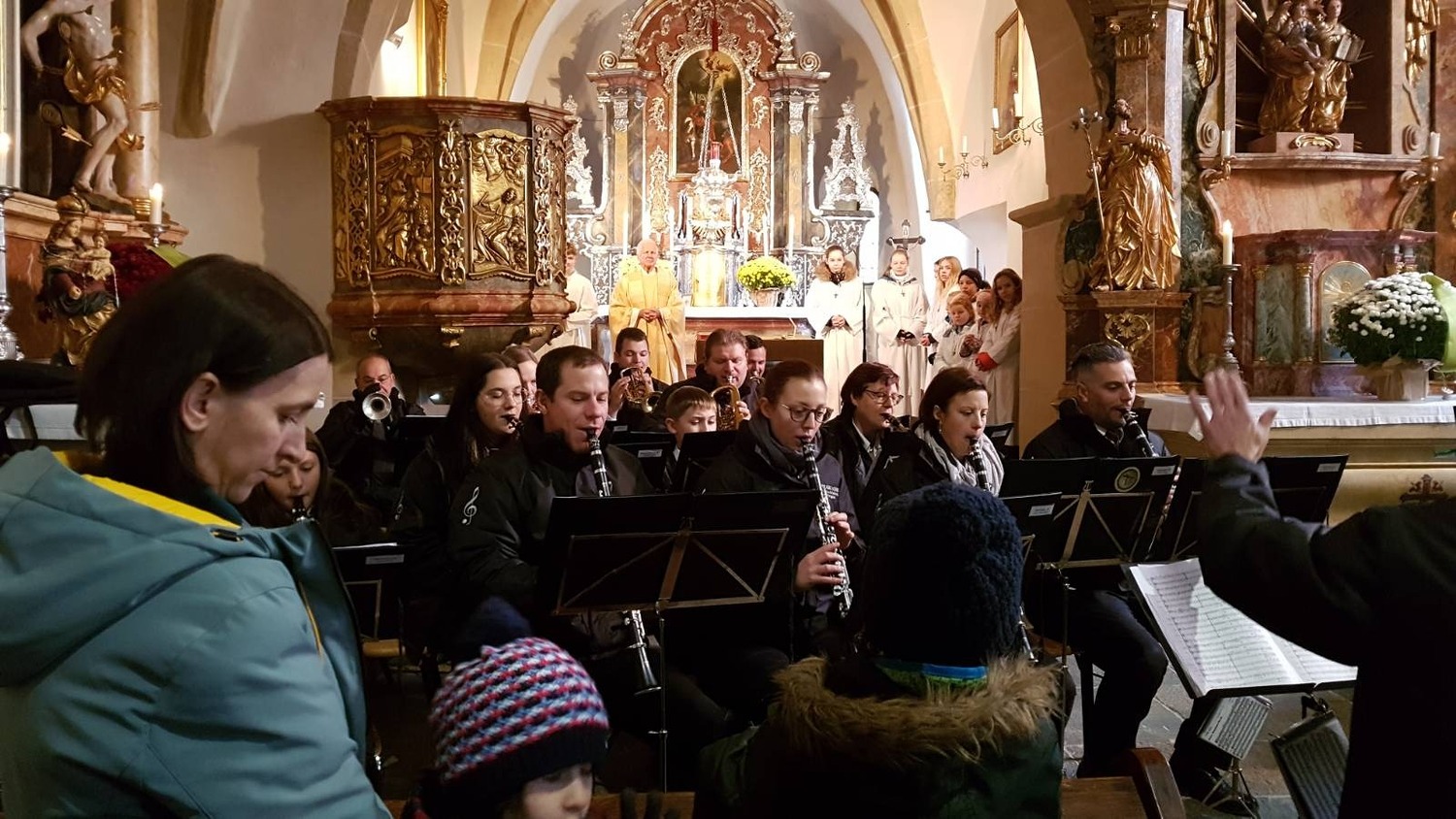 Am Sonntag, dem 20. 11. 2022 spielte der Musikverein Peggau – Deutschfeistritz zu Ehren der Hl. Cäcilia in voller Besetzung der Blaskapelle beim Gottesdienst. Sowohl die Auswahl der Musikstücke als auch die sensible und dynamische Spielweise ließ eine sehr festliche und feierliche Stimmung aufkommen. Durch die einleitenden und begleitenden Worte des Zelebranten, Prof. Helmut Schlacher, wurde die Aufmerksamkeit auf die religiösen Bezüge der Musik gelenkt, was ein selektives Zuhören und Mitfeiern ermöglichte. Es war ein beeindruckendes Erlebnis für die feiernde Gemeinschaft der voll besetzten Kirche, wofür sich Toni Gschier im Namen des Herrn Pfarrers und des Pfarrgemeinderates herzlich bedankte.
