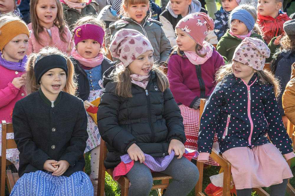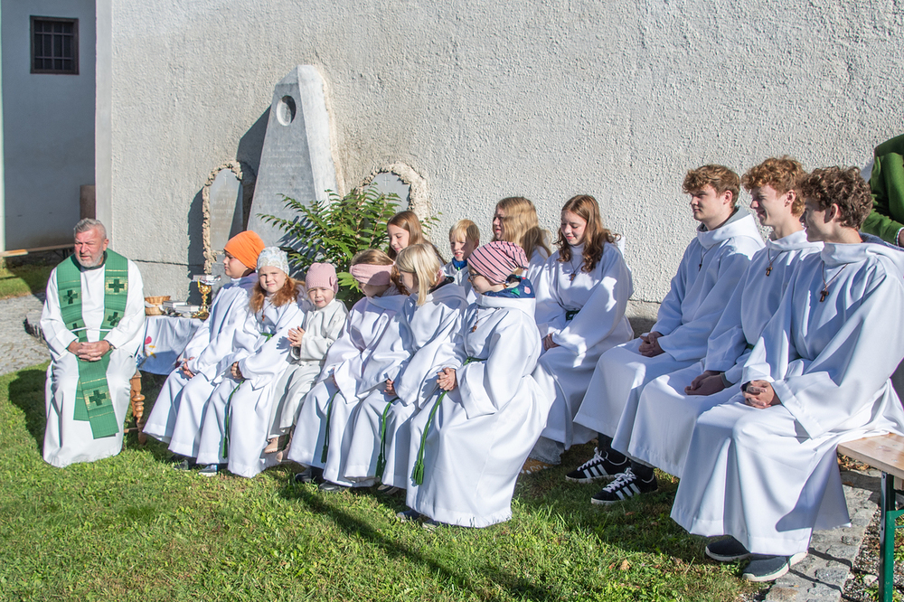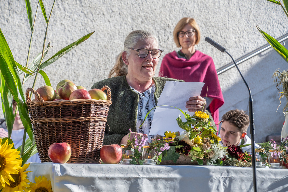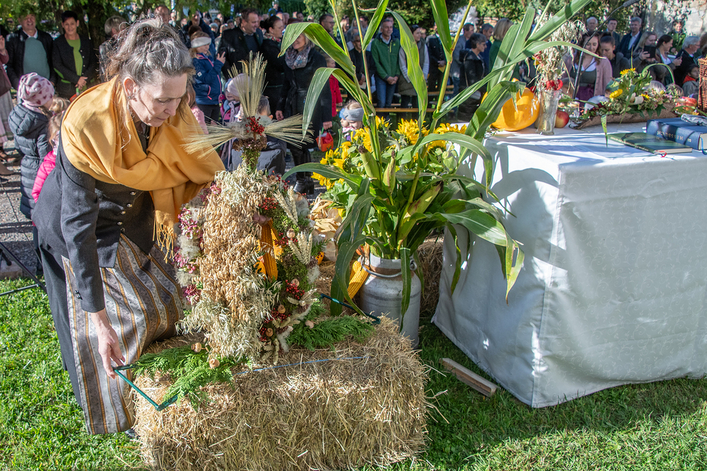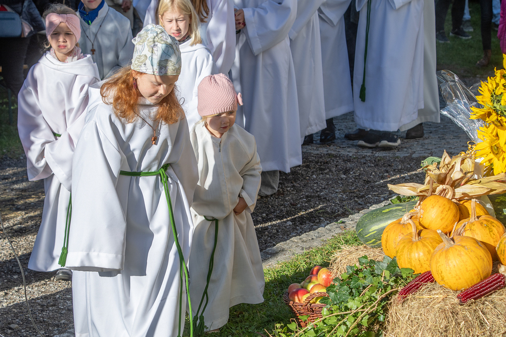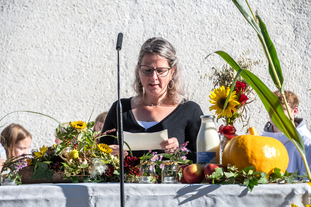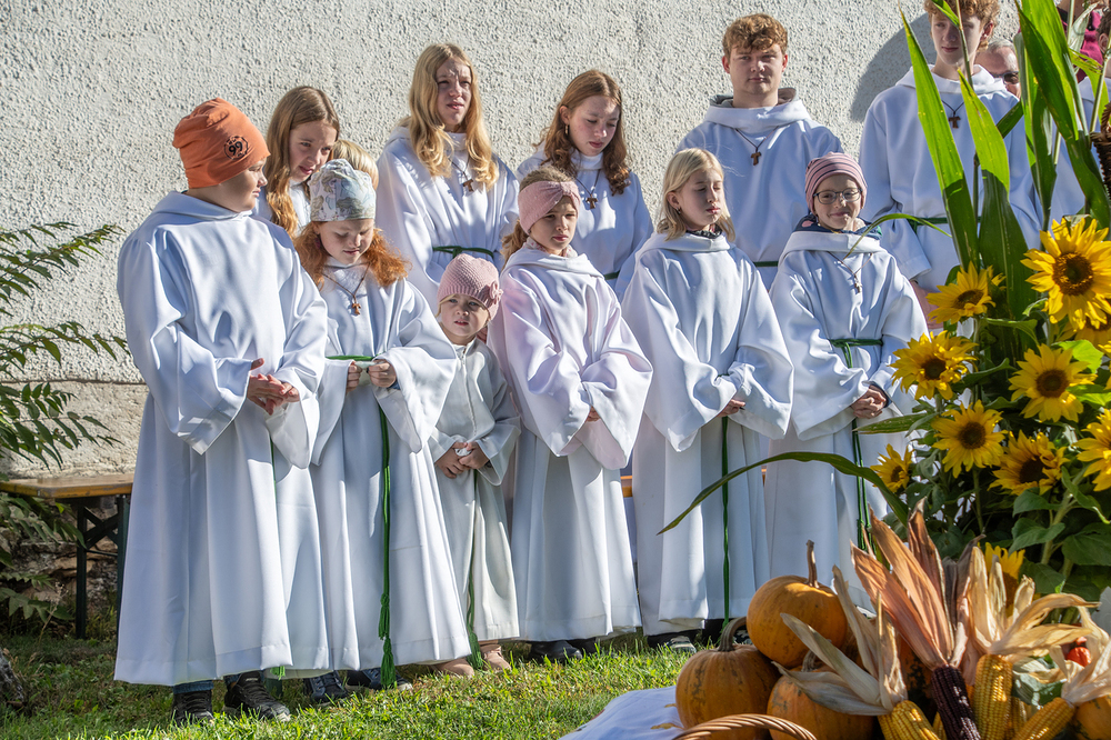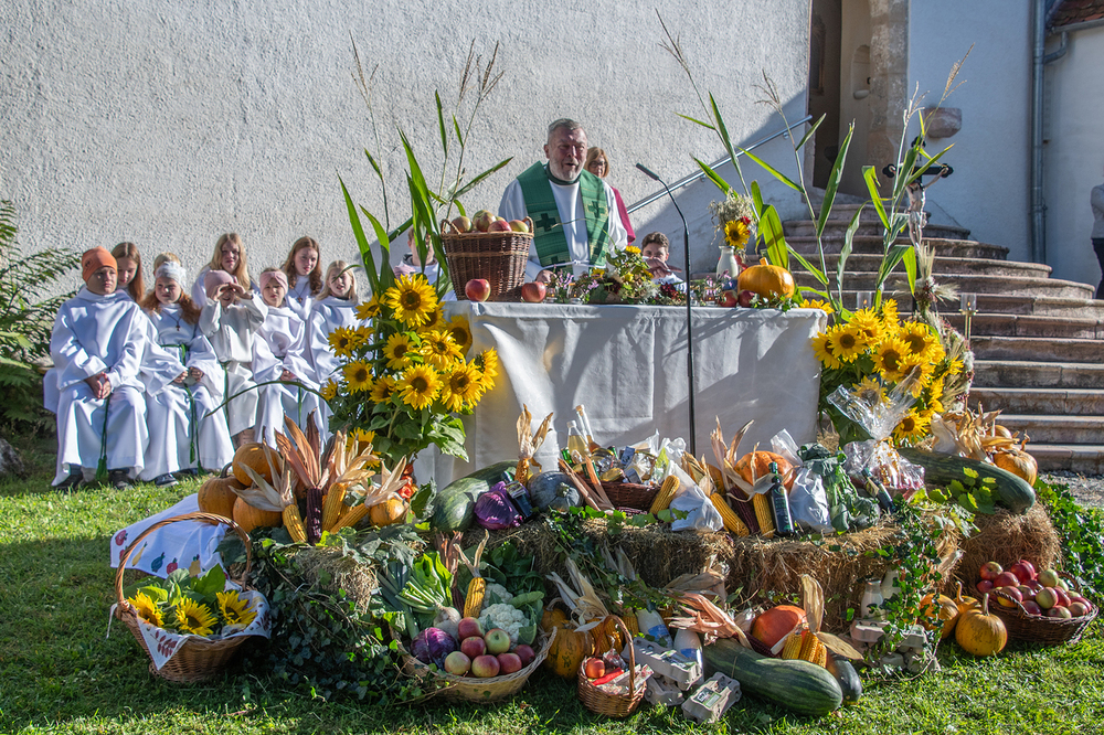 Das Erntedankfest konnte heuer dank schönem Wetter im Kirchhof gefeiert werden .