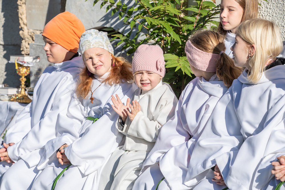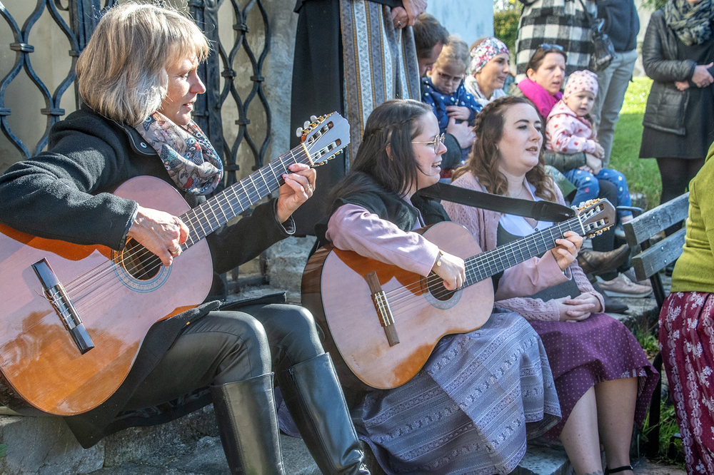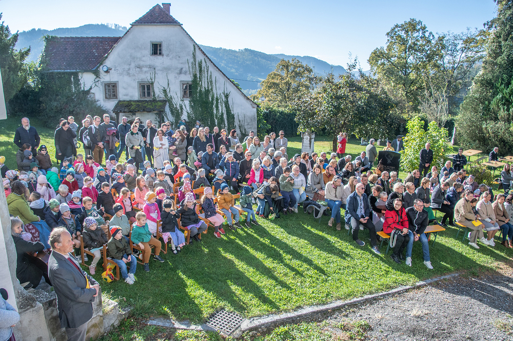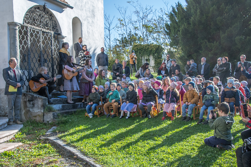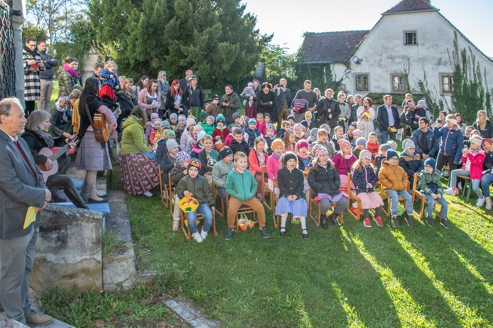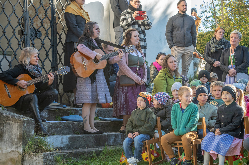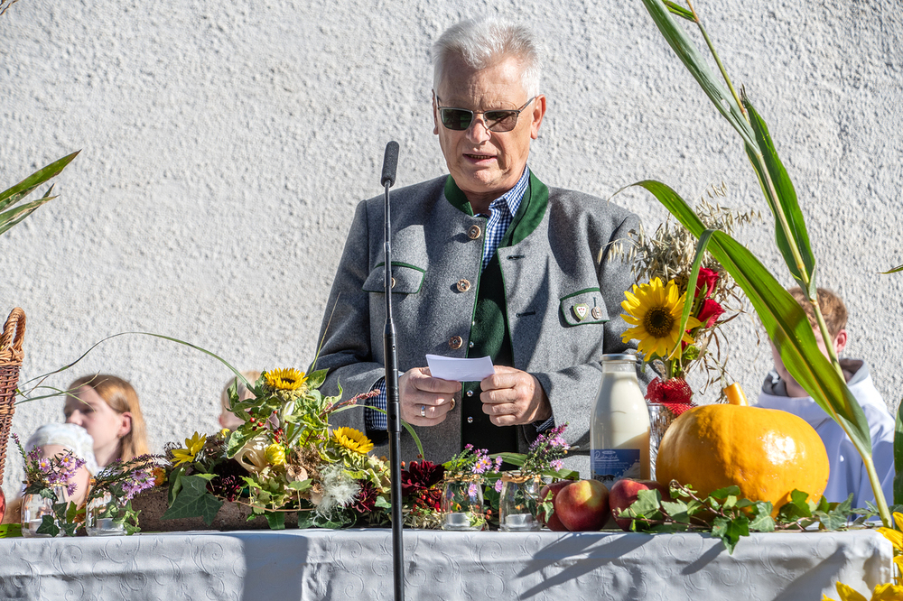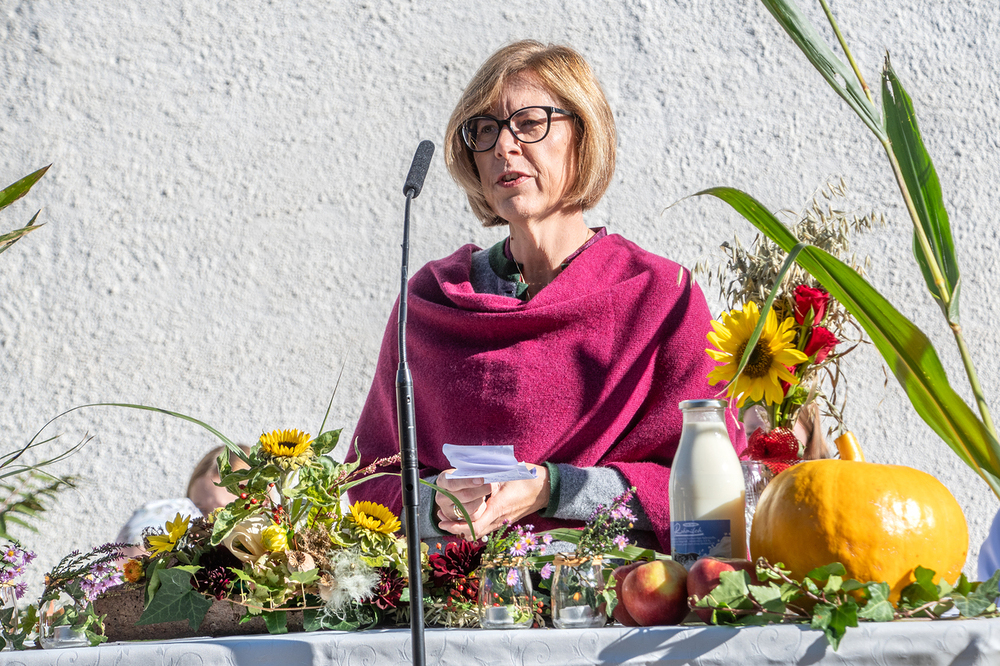Das Erntedankfest konnte heuer dank schönem Wetter im Kirchhof gefeiert werden .