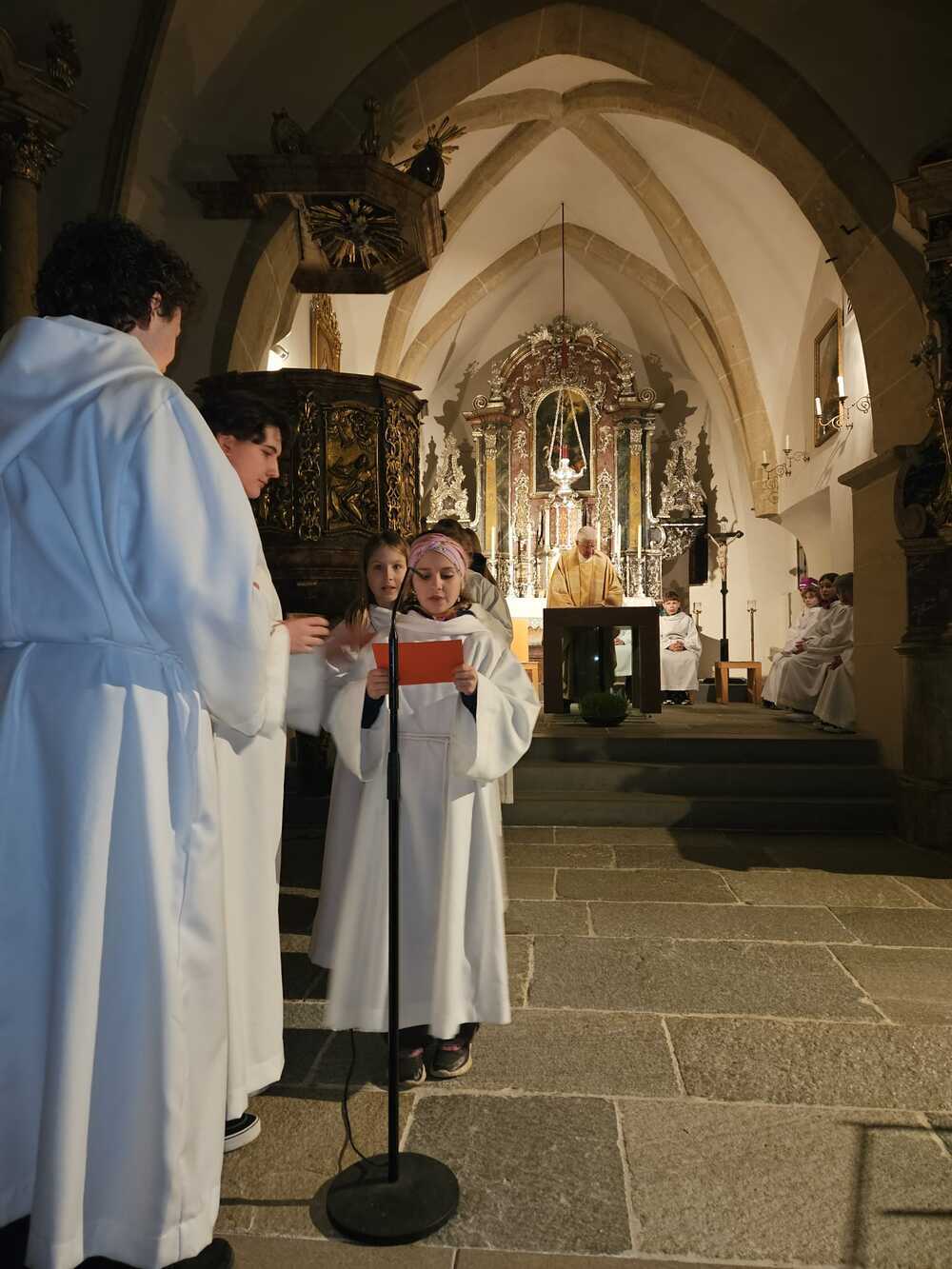 Der Chor unter der Leitung von M. Mikulik gestaltete die Feier musikalisch und verlieh der Liturgie eine besonders festliche Atmosphäre. Als Kantor fungierte Valentin Zwitter jun., der uns auch am Karfreitag mit wunderschönen Gesang berührt hat, begleitet wurde er dabei von befreundeten Studenten/innen.