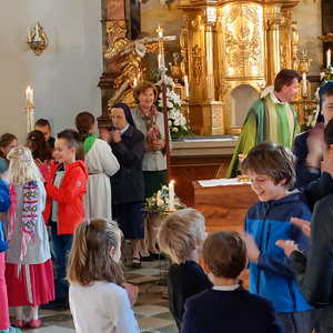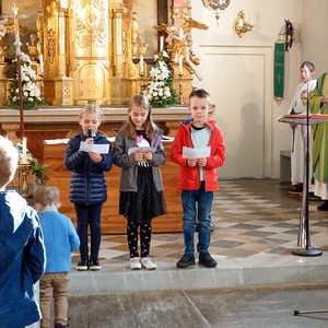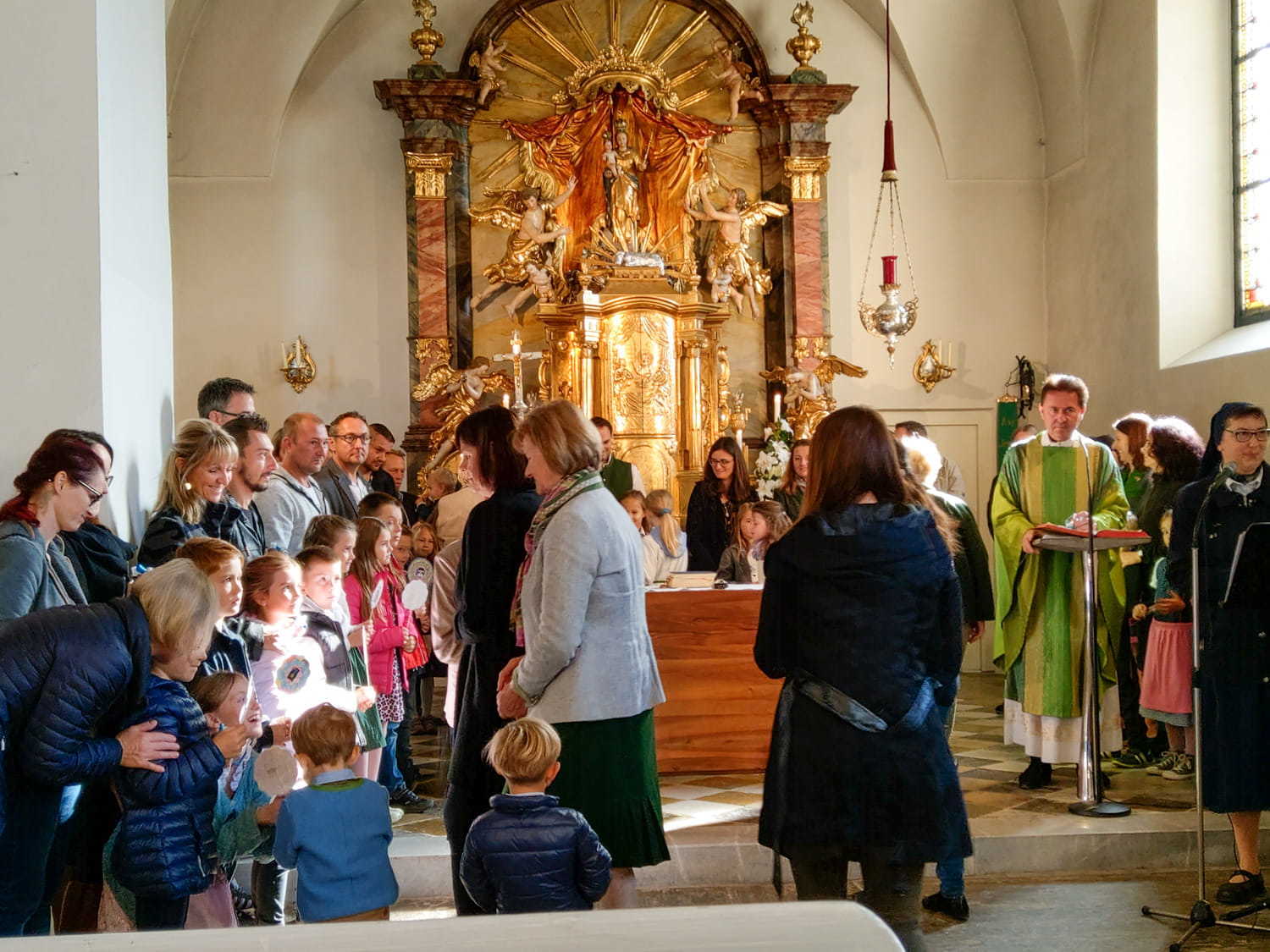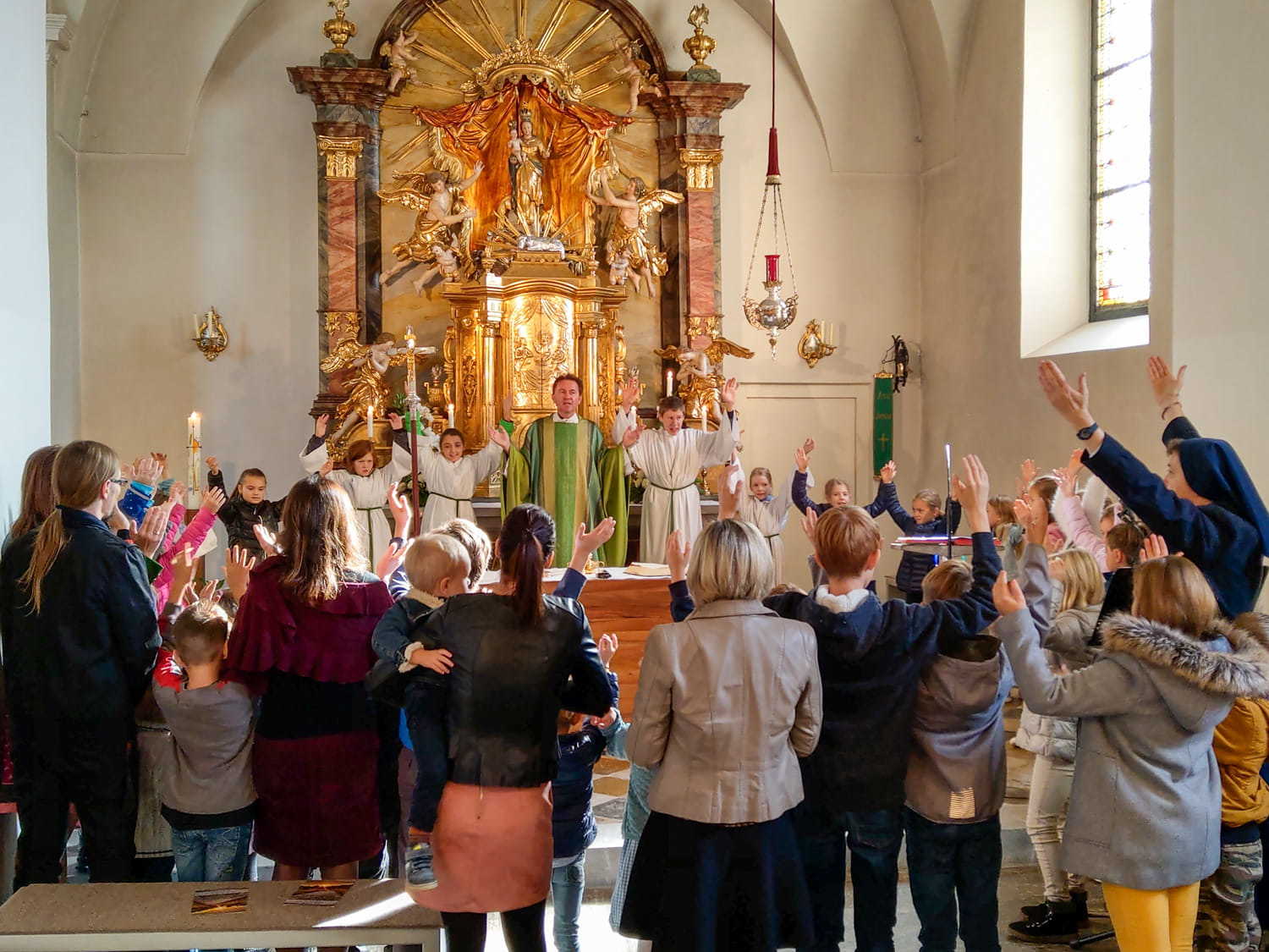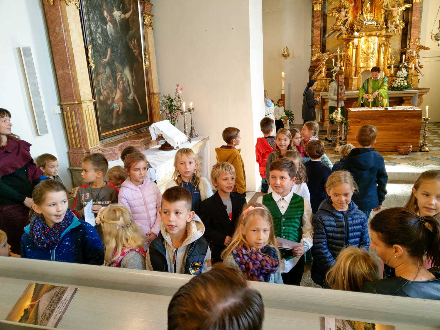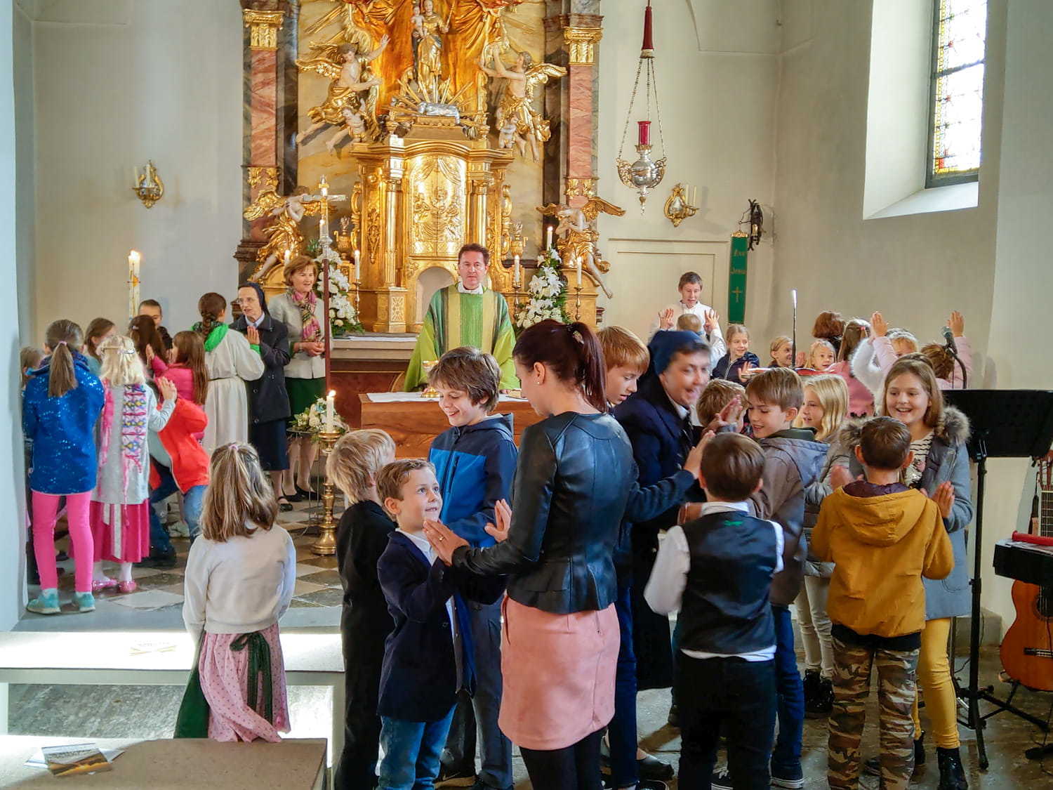 Am Sonntag, den 20. Oktober wurden unsere 22 Erstkommunionkinder bei einem schwungvollen und schönen Gottesdienst der Pfarrgemeinde vorgestellt. Damit beginnt die Erstkommunionvorbereitung, die von den Eltern und Kommunionbegleitern durchgeführt wird.