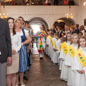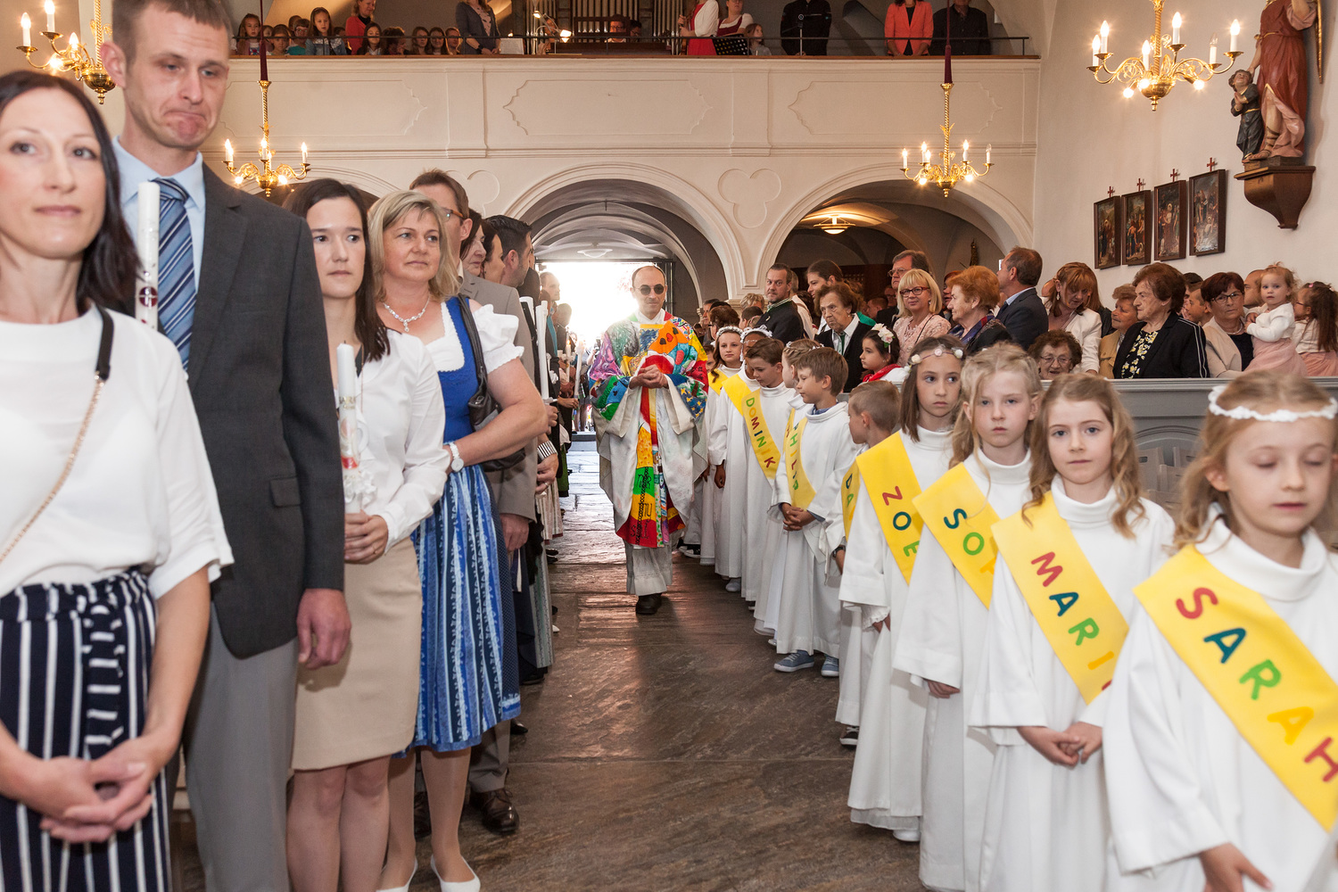 28 Kinder empfingen am 26. Mai von Pfarrer Johann Karner das erste Mal das Sakrament der Eucharistie.