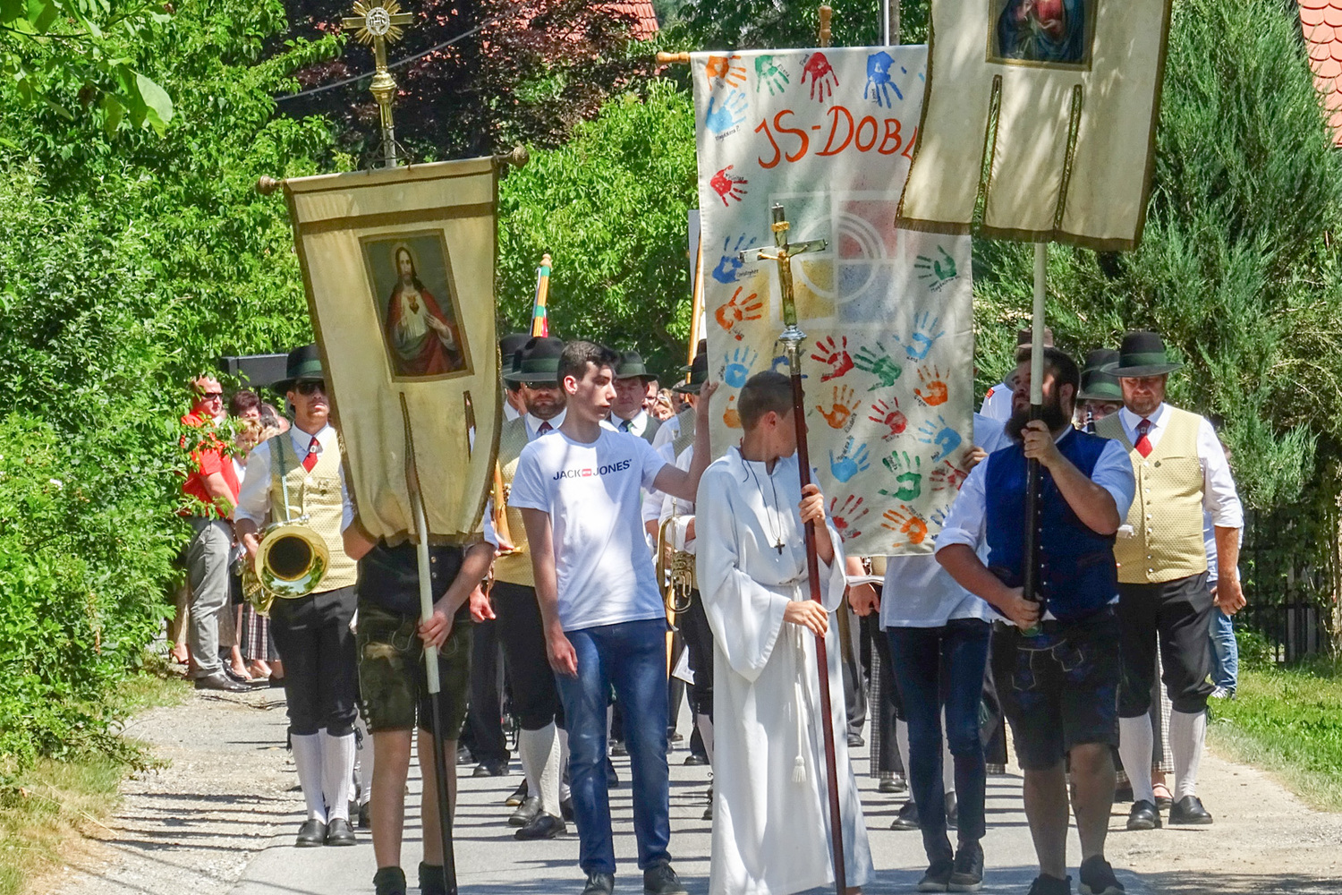 Heilige Messe mit anschließender Fronleichnamsprozession mit Pfarrer Johann Karner in Dobl.