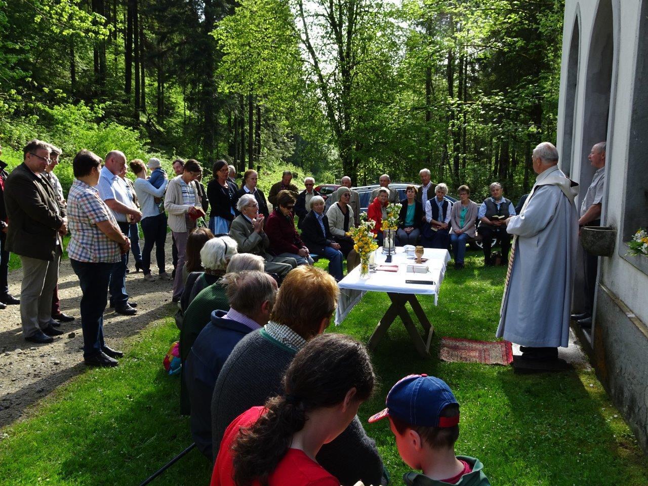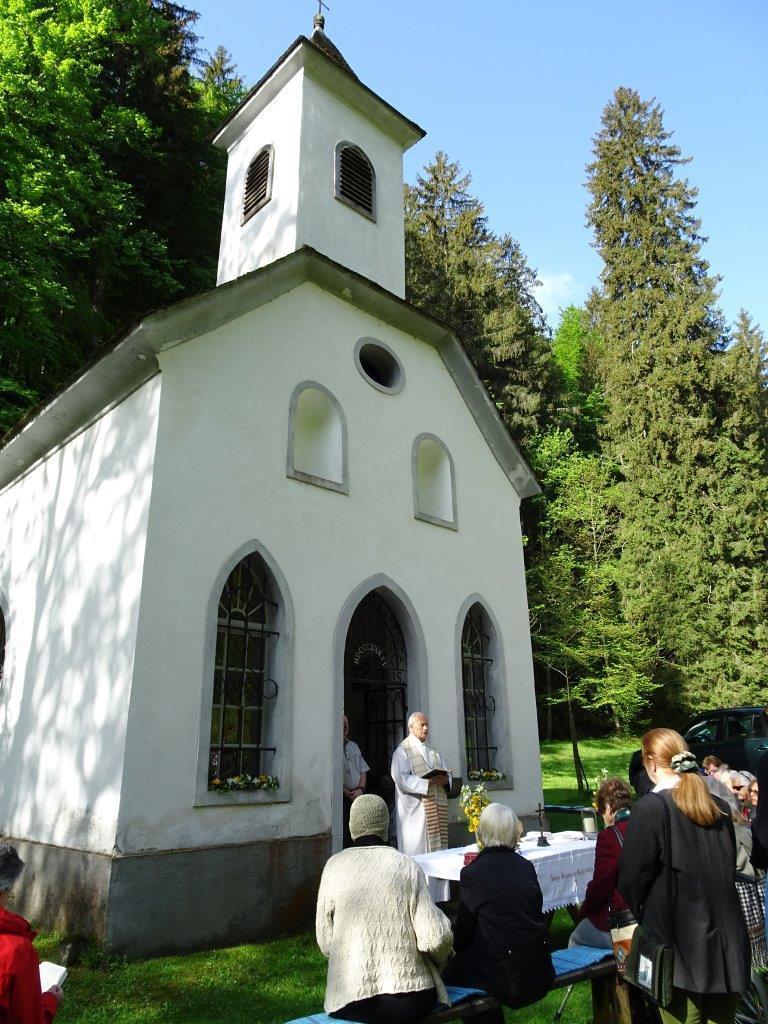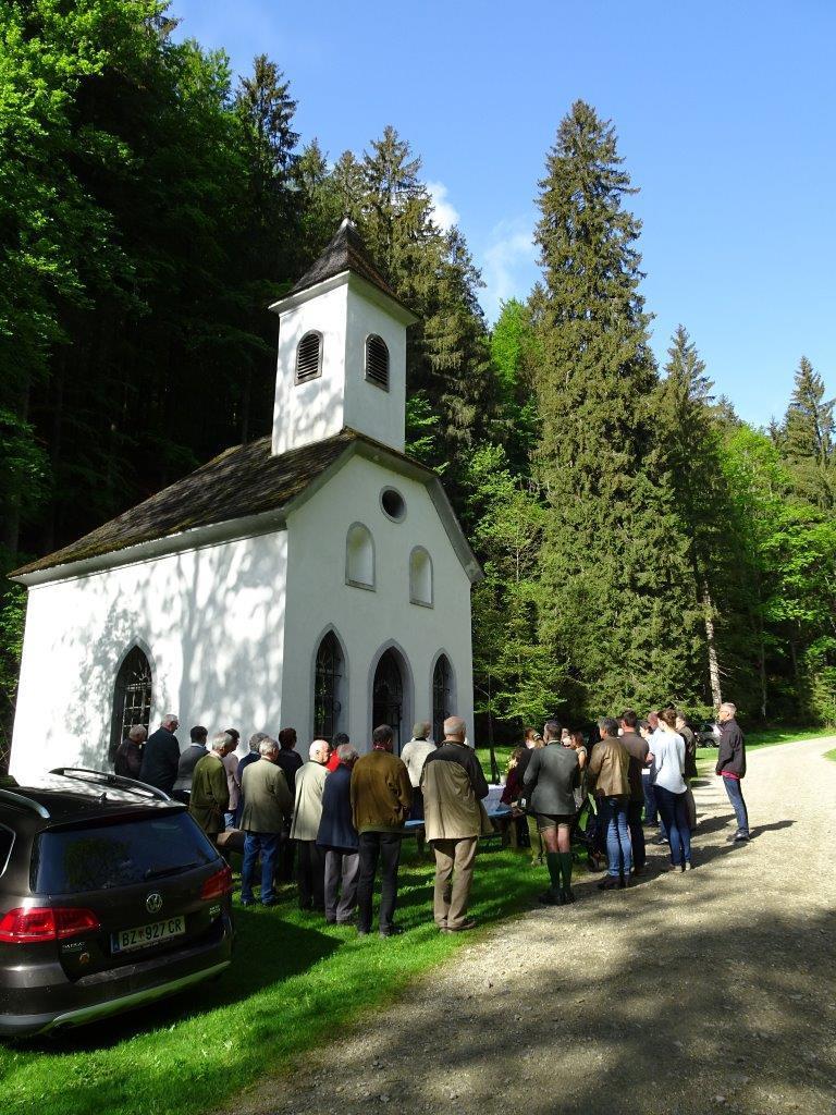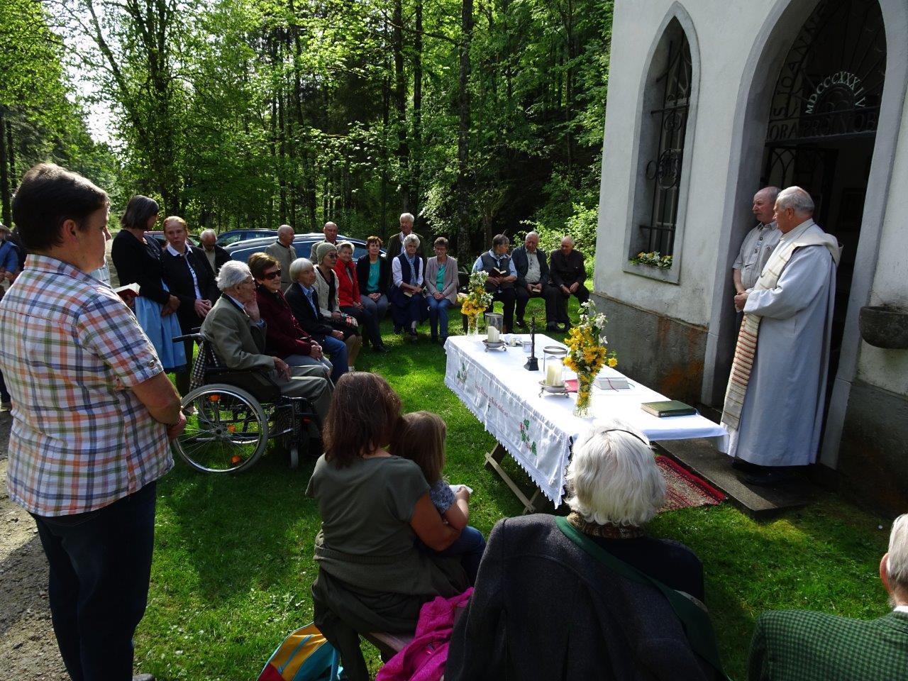 Pater Simon zelebrierte am 3. Mai, dem Festtag der Apostel Philippus & Jakobus, unter Anteilnahme von 40 Gläubigen um 9 Uhr die hl. Messe bei der idyllisch gelegenen JORDANKREUZ-KAPELLE im Pöllagraben. Der langjährige Betreuer dieses Kleinods, Hans Zink (92), der älteste Gamser, Rupert Windisch (97), Gräfin Marie Maculan und ein Gast aus Südtirol sowie einige Kleinkinder wohnten der stimmigen Messfeier bei.