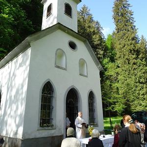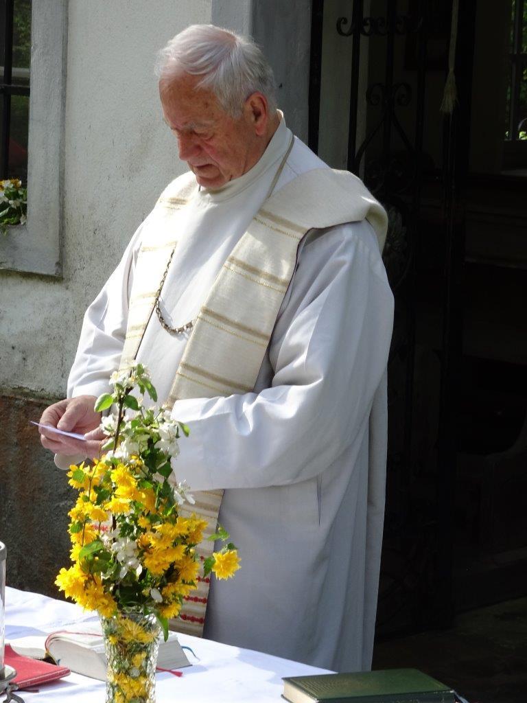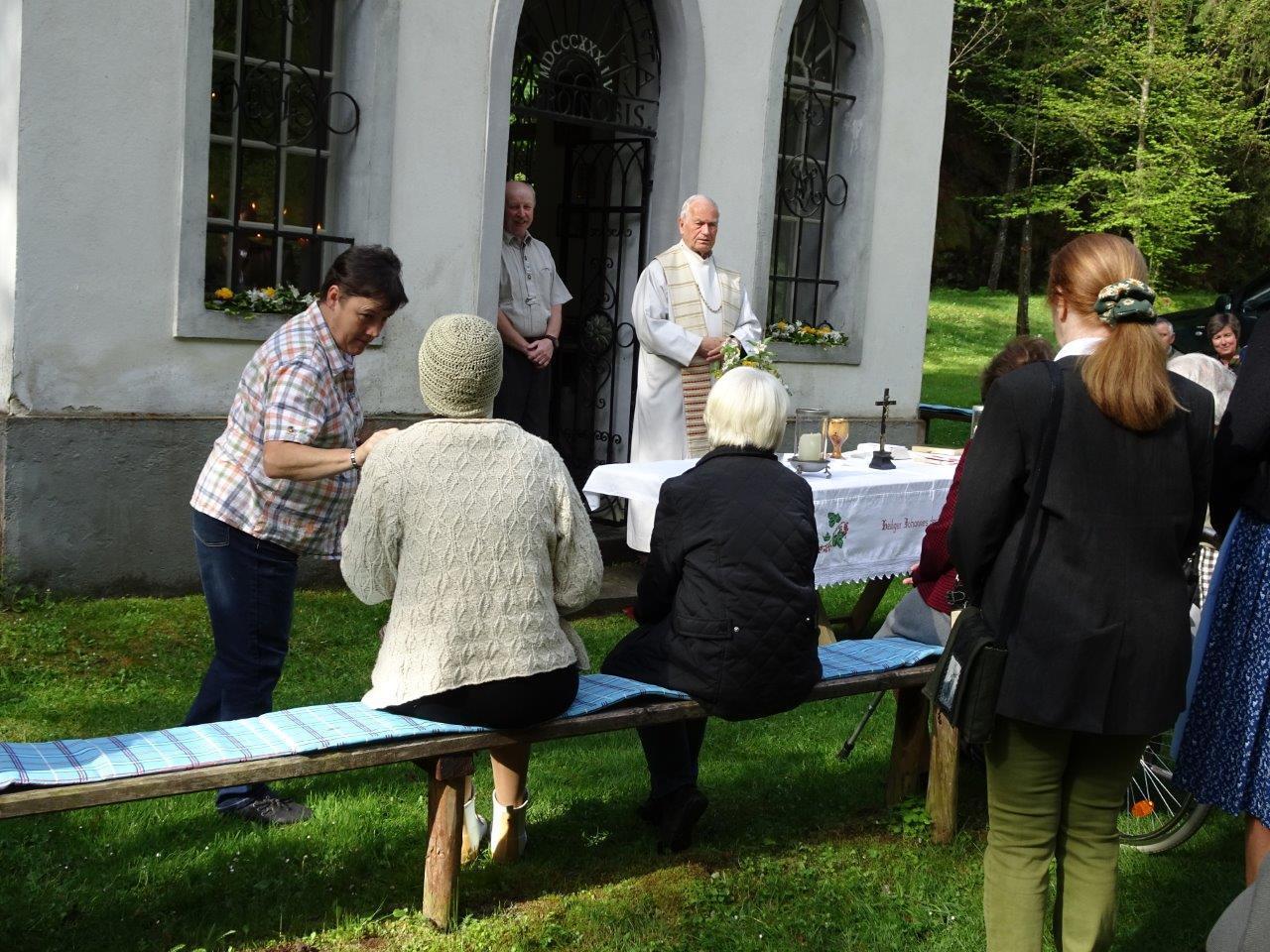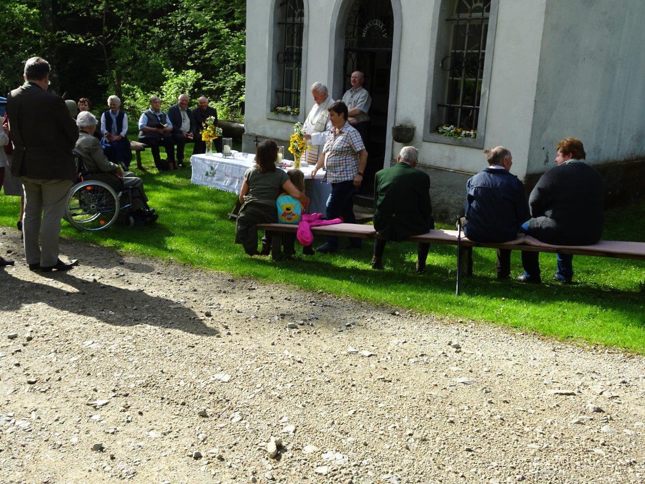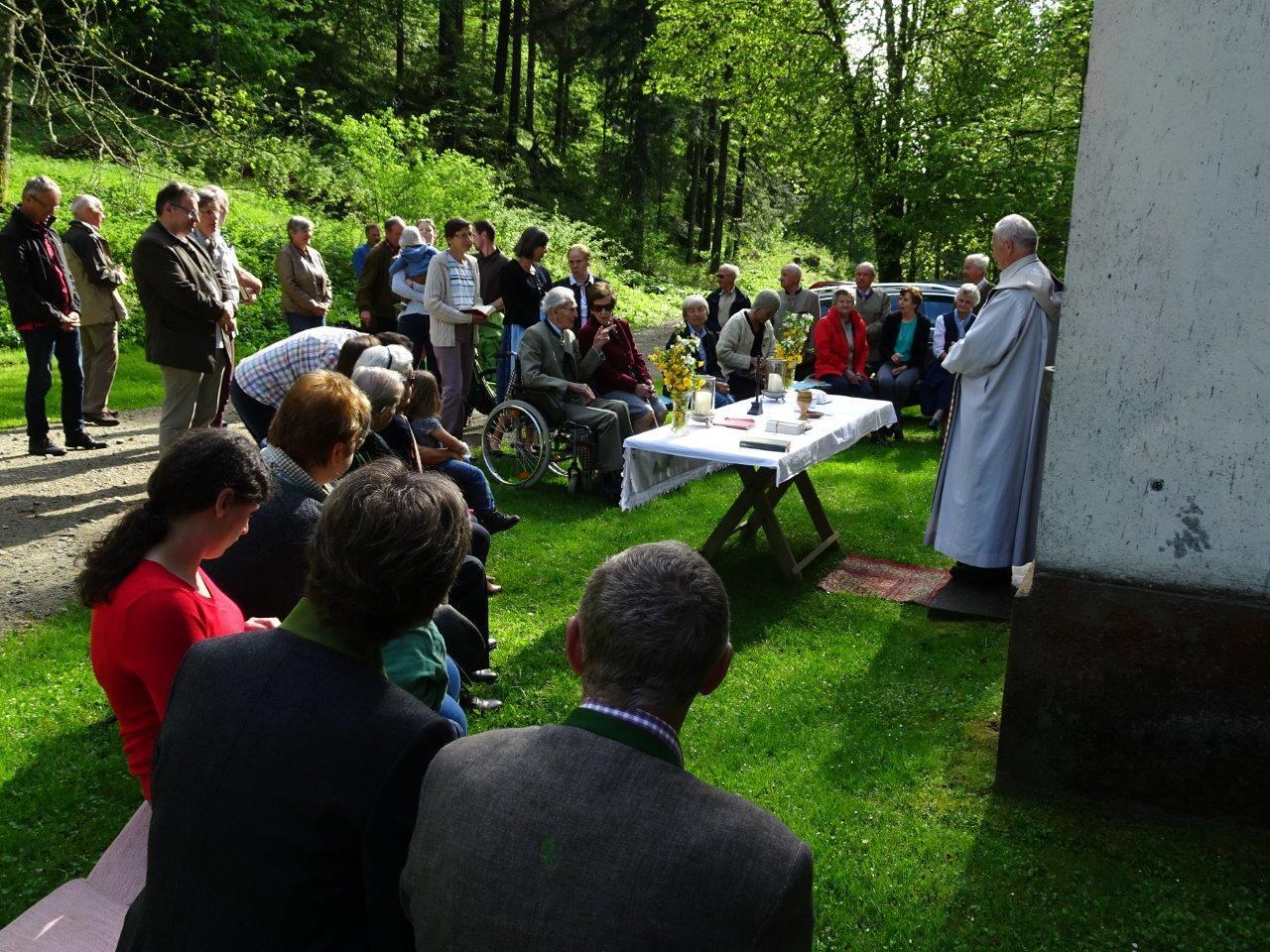 Pater Simon zelebrierte am 3. Mai, dem Festtag der Apostel Philippus & Jakobus, unter Anteilnahme von 40 Gläubigen um 9 Uhr die hl. Messe bei der idyllisch gelegenen JORDANKREUZ-KAPELLE im Pöllagraben. Der langjährige Betreuer dieses Kleinods, Hans Zink (92), der älteste Gamser, Rupert Windisch (97), Gräfin Marie Maculan und ein Gast aus Südtirol sowie einige Kleinkinder wohnten der stimmigen Messfeier bei.