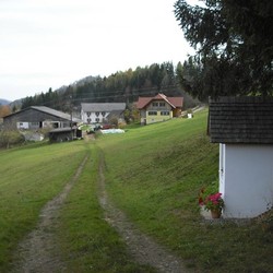 Der äußerst gläubige Besitzer hatte schon lange das Bedürfnis, dem verehrten Wallfahrtsort Mariazell ein Denkmal zu setzen. Zugleich wollte er einen Ort für das Andenken an den im November 2009 im Wald des Anwesens tödlich verunglückten Altbauern Peter Prietl vlg. Wirt schaffen. Der neue Bildstock in der Nähe des Hofes steht idyllisch am Waldrand unter großen Fichten und ist sehr schön mit Pelargonien geschmückt. Unmittelbar daneben laden eine hölzerne Ruhebank und ein kleiner Fischteich zum Verweilen ein. Man hat von diesem Punkt eine herrliche Aussicht über das Murtal und sieht viele Kapellen, Bildstöcke und Kreuze in der näheren Umgebung – von der Badl-Kapelle über den Leonhard-Bildstock am Dirnberg bis zum Gipfelkreuz am Gschwendt.