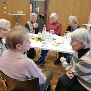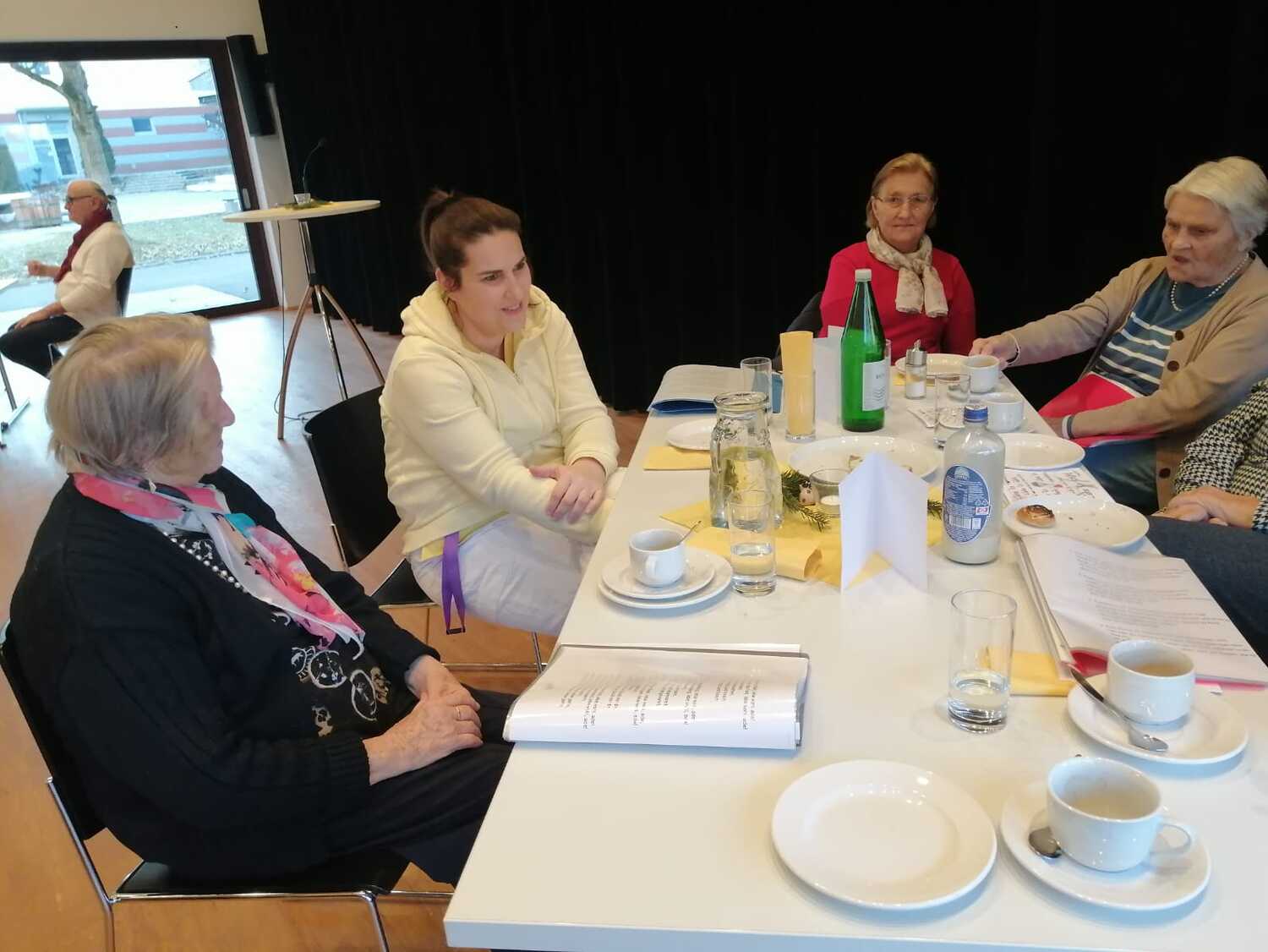 Es wurde auch an­ge­regt geplaudert und gelacht und eine be­son­dere Freude war der Be­such von klein Kamilla mit Oma und klein Aurelia mit Mama. So wurde der Nach­mit­tag zu einem kleinen "Ge­ner­ation­en­tref­fen" mit schönen Be­geg­nun­gen und Ge­sprä­chen.