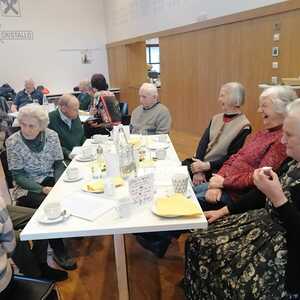 Das Team um den Se­ni­or­en­nach­mit­tag bietet den Be­such­er­:in­nen mit vie­len neu­en Ideen im­mer wie­der ein ab­wech­slungs­rei­ches Pro­gramm. So stand der Be­geg­nungs­nach­mit­tag im Jän­ner unter dem Motto "Sin­gen macht glück­lich". Be­son­ders kräf­tig un­ter­stütz­ten Herr Franz Riedl und Frau Emmy Ertl die Sin­gen­den mit Ihren Stim­men.