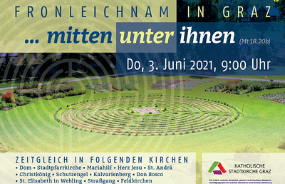 Zeitgleich mit elf Pfarren der Katholischen Stadtkirche Graz feiern wir am Donnerstag, den 03. Juni 2021, um 09:00 Uhr, das Hochfest des Leibes und Blutes Christi.
