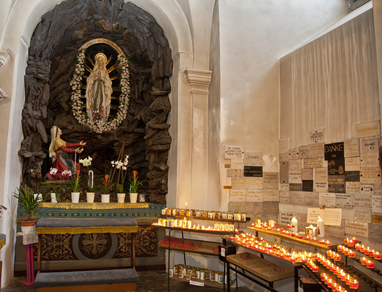 Von den Mariatrostern wird die Pauluskapelle auch liebevoll "Winterkirche" genannt, da im Gegensatz zum Hauptraum der Basilika die Pauluskapelle geheizt wird und im Winter vermehrt Gottesdienste in der Kapelle abgehalten werden.