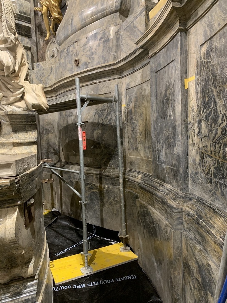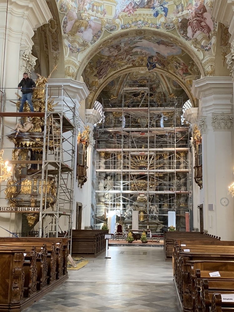 In der Basilika wurden in dieser Woche der Hochaltar und die Kanzel eingerüstet.
