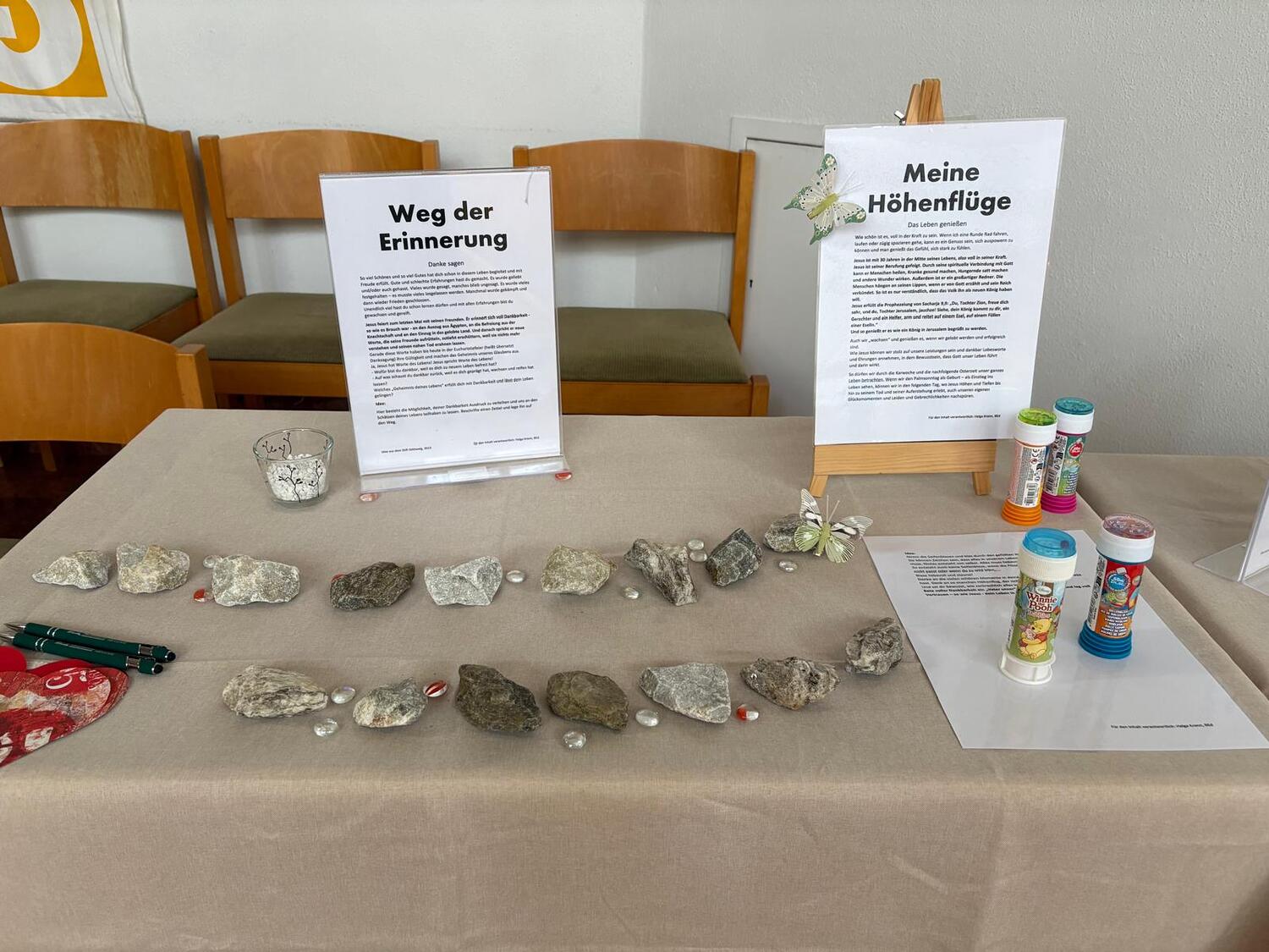 Die Fastenstationen laden in der Fastenzeit Groß und Klein dazu ein am „Weg der Erinnerung“ teilzunehmen. Sich über „Meine Höhenflüge“ zu erfreuen, aber auch unsere Klagen an der „Klagemauer“ zu hinterlegen. Beim „See der Tränen“ stehen zu bleiben oder ein Licht leuchten lassen bei „Hoffnung entzünden“.