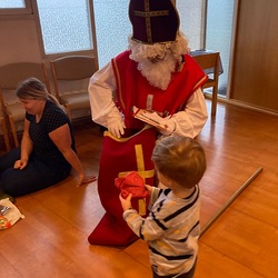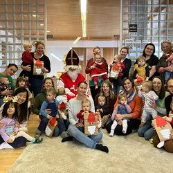 Wir beginnen mit einem Begrüßungslied und machen dann weiter mit einigen Mitmach-Liedern und Kniereitern. Es gibt immer wieder etwas Neues. Mal haben wir Instrumente, mal eine Geschichte, dann wieder eine Handpuppe.