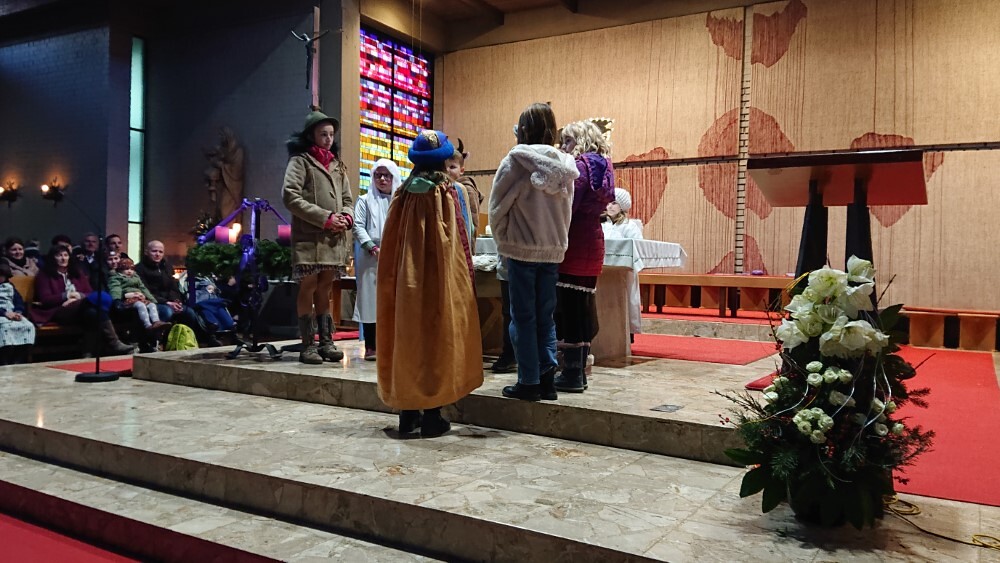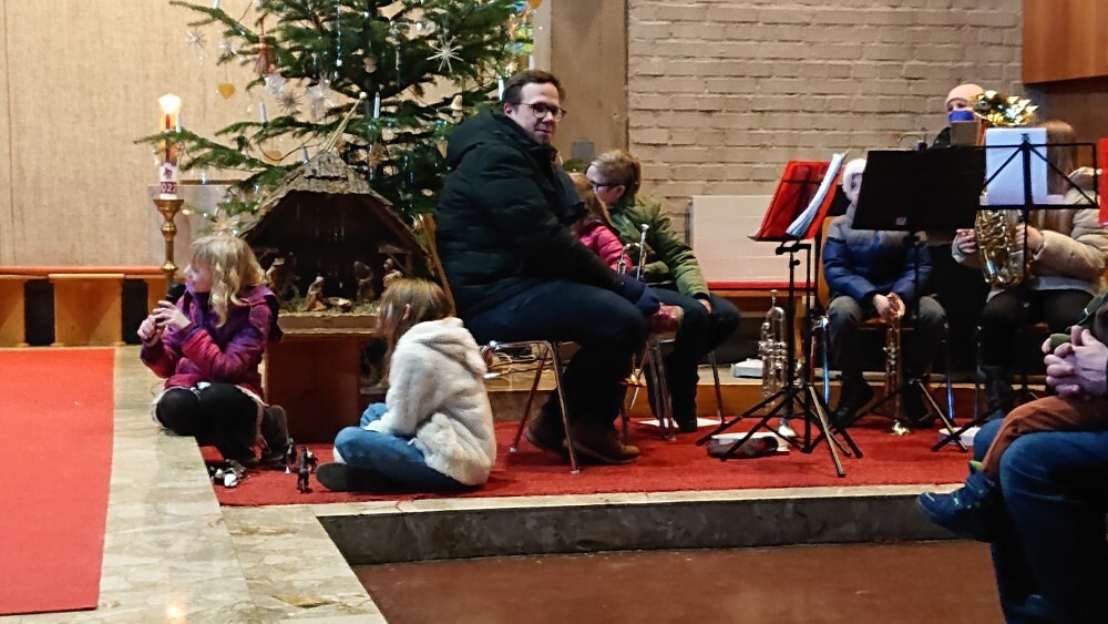 Tina Fegerl hat mit den Kindern in vielen Proben wieder ein tolles Krippenspiel einstudiert und eine besinnliche Andacht vorbereitet. Musikalisch begleitet wurde es von eine Bläsergruppe von klein bis groß.