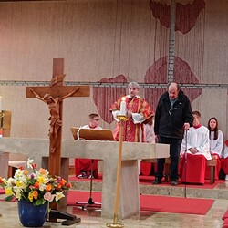 Sehr stimmig und berührend feierten die Pfarren Lieboch und Tobelbad gemeinsam die Karfreitagsliturgie mit Toni Schrettle und Diakon Michi Zepf. Nach der Passion und den großen Fürbitten kamen die Gläubigen zur Kreuzverehrung mit Blumen. Schöne Musik half dabei Jesus auf seinem Weg des Leidens zu begleiten.