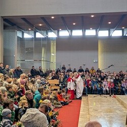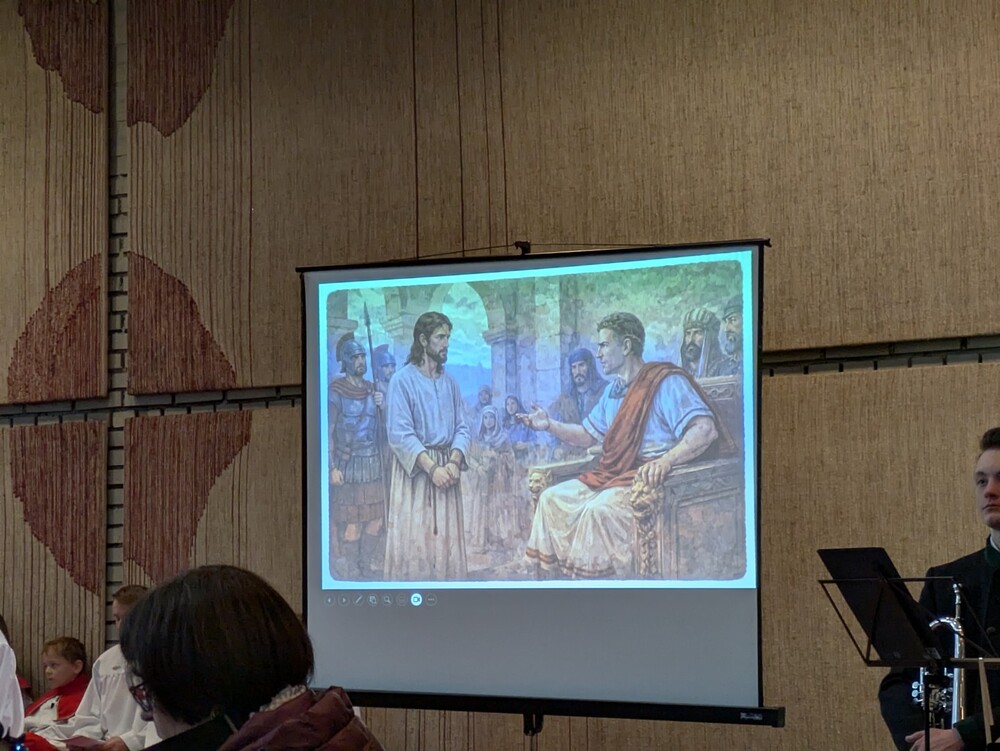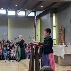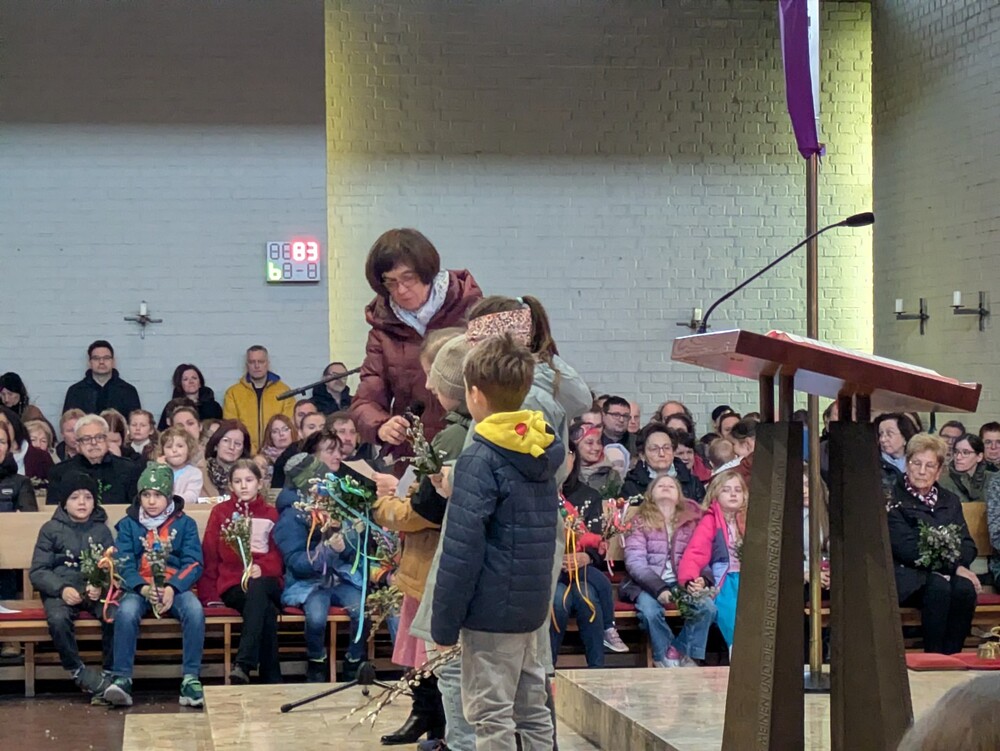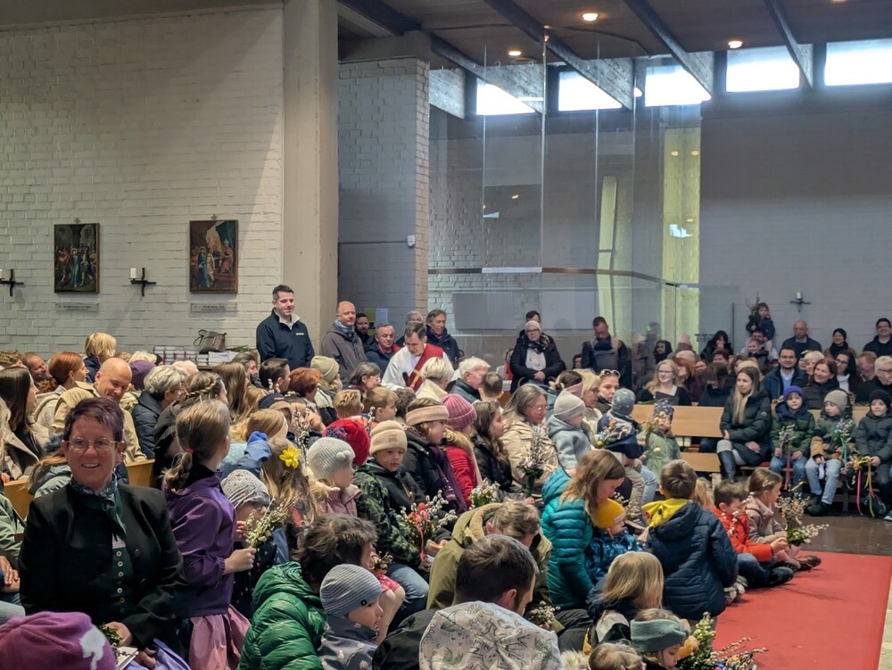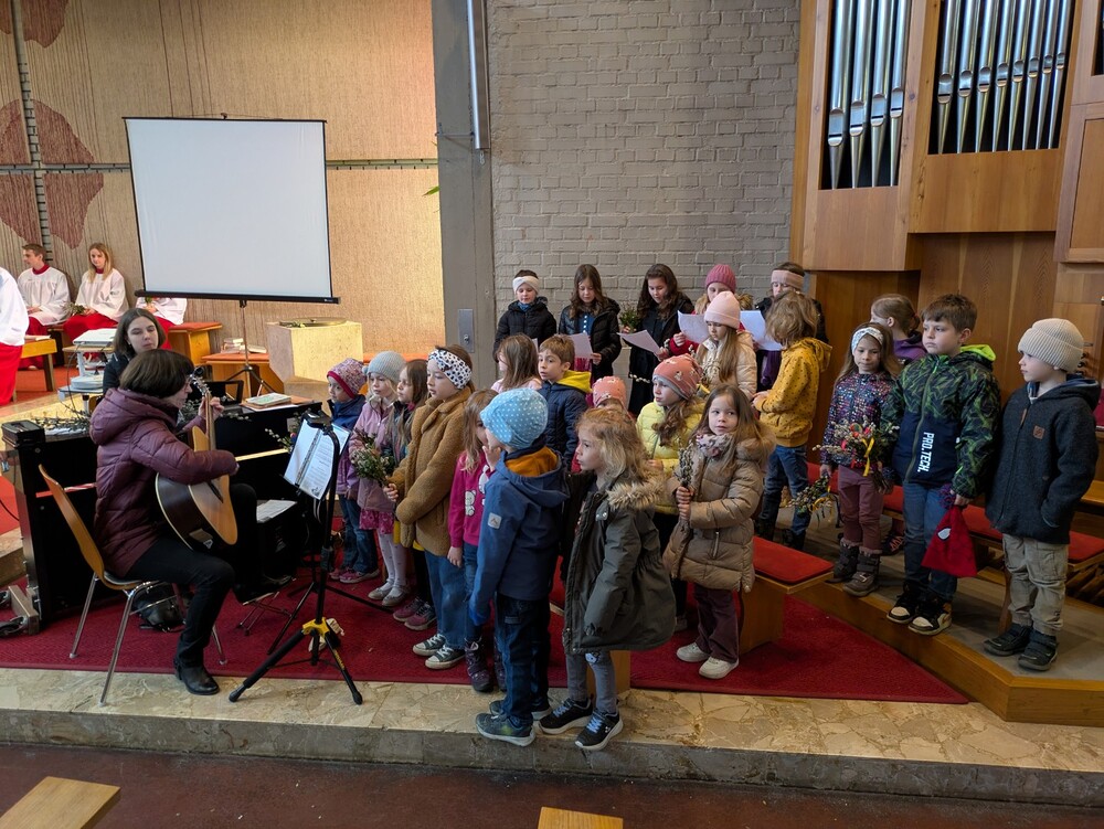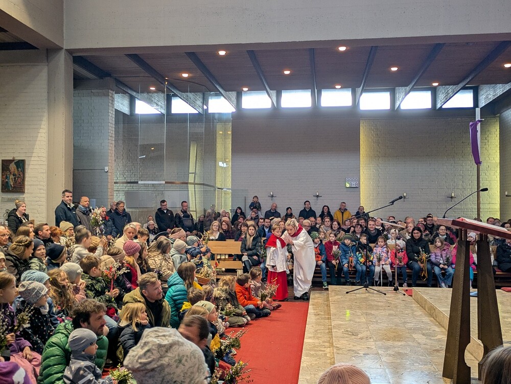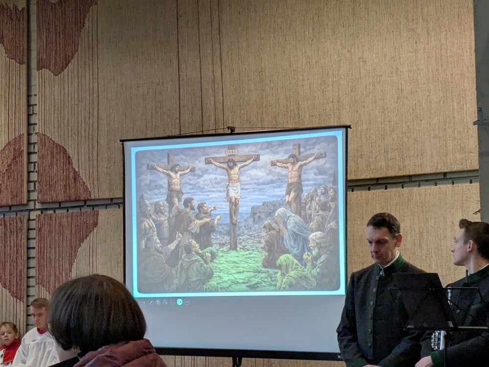 Die Passion, also die Leidensgeschichte, wurde in kindgemäßer Form bei diesem Familiengottesdienst mit verteilten Rollen vorgetragen und mit Bildern unterstützt. Die gesamte volle Kirche feierte diese schöne Wort-Gottes-Feier mit Segen für die Erstkommunionkinder und begeisterter Musik des Kilichores unter der Leitung von Kathrin und Edith Müllerferli.
