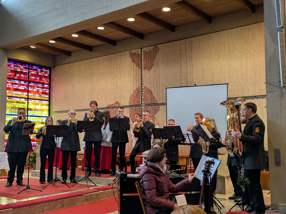 Aufgrund der Wetterlage wurde die Feier in die Kirche verlegt. Eine große Abordnung der Marktmusikkapelle fand auch in der Kirche Platz und trug zur Feier wesentlich bei.