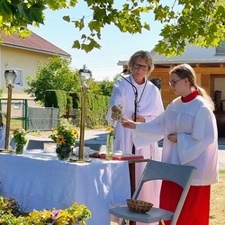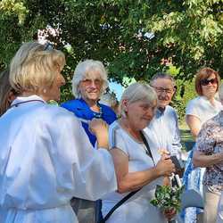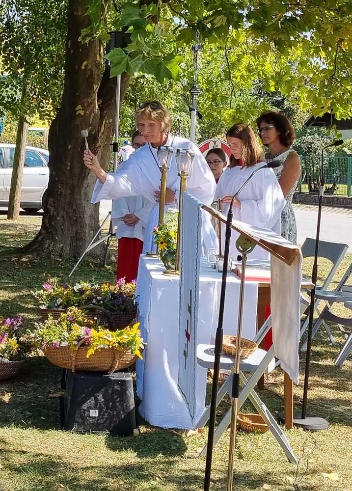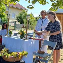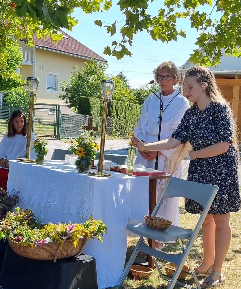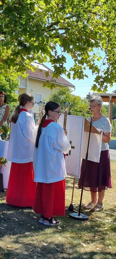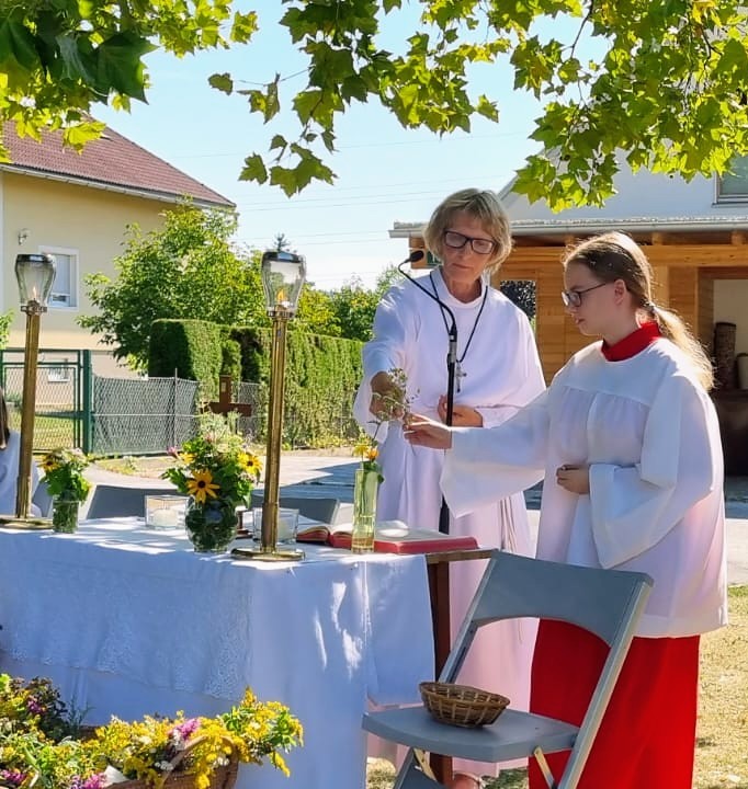 Bei strahlendem Sonnenschein feierten wir mit Wort-Gottes-Feier-Leiterin Maria Pitsch und Tina Schörgi einen stimmungsvollen Gottesdienst in der wunderschönen Natur des Dorfplatzes. Wir erfuhren, warum die Mariendistel weiße Streifen hat und Heilkräfte besitzt. In der Predigt wurden zwei starke Frauen näher vorgestell, die auf ihre Art und Weise mutig waren und ihrer Zeit voraus: die Heilige Maria und Hildegard von Bingen. Das Musikensemble der Marktmusik Lieboch und ein kleiner "Kräuterchor" trugen zur festlichen Gestaltung bei. Groß und Klein freuten sich über die duftenden, gesegneten Kräuterbüschl, die das fleißige Blumenteam wieder gebunden hatte.