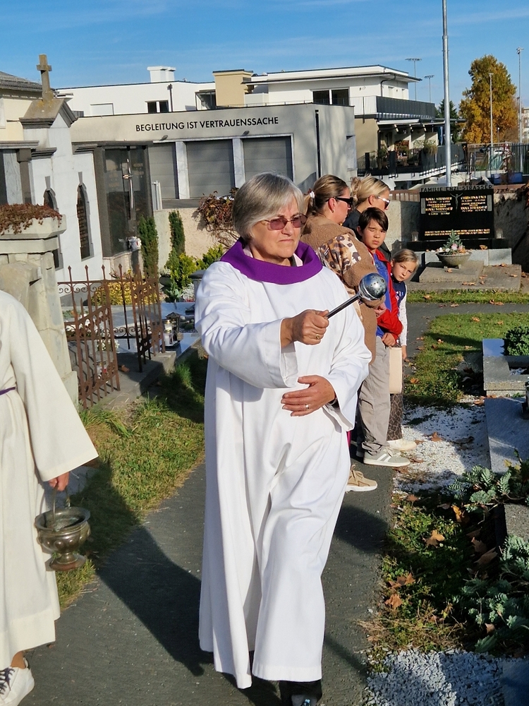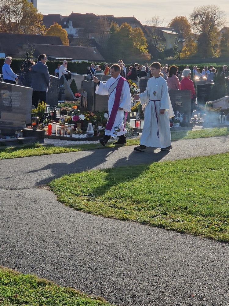 Zuvor wurde in schönen Texten und Gebeten, musikalisch umrahmt von der Marktmusik Unterpremstätten-Zettling, aller Verstorbenen gedacht. Auch wurden die Namen der im vergangenen Jahr heimgegangenen Personen nochmals laut ausgesprochen. Der aufsteigende Weihrauch verleiht den Verstorbenen besondere Würde und möge unsere Gebete zu Gott emportragen.
