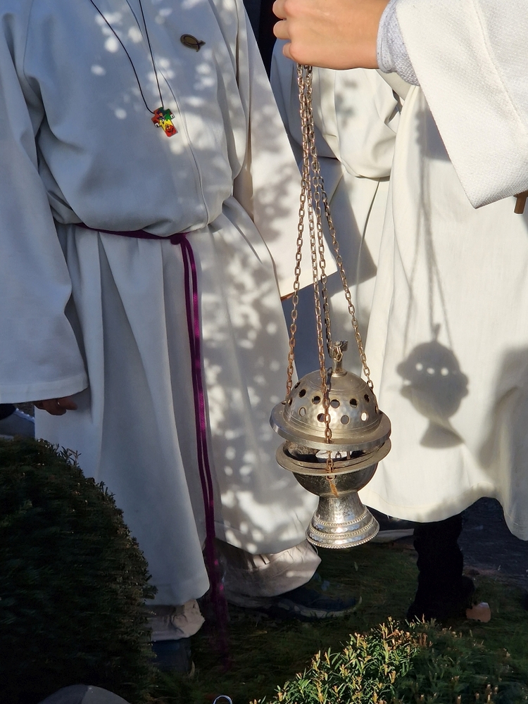 Gedanklich führte uns Vikar Norbert auf die Spur, was der Vers „Seid also wachsam!“ aus dem Evangelium (Mt 24, 42) für uns heute heißen kann - und wie die Vision des Jesaja, dass Schwerter zu Pflugscharen und Lanzen zu Winzermessern umgeschmiedet werden (Jes 2, 4), in unserer Welt ein Stück weit Wirklichkeit werden könnte. Es kann nur gelingen, wenn „Menschen ihr Lebensnavi in Jesus verankern“, so Vikar N. Glaser in seiner Predigt.