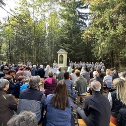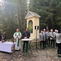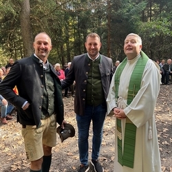 Die Idee war, die Jagdgesellschaften mit Ing. Manfred Froschhauser, die Gemeinde mit Bürgermeister Dr. Matthias Pokorn und die Pfarre mit dem leitenden Pfarrer des Seelsorgeraums Kaiserwald, Lic. theol. Claudiu Budău, für eine Premstättner Hubertusmesse beim Jägerkreuz im Kaiserwald am 11. Oktober 2025 zusammenzuspannen. Das Zusammenspiel hat wunderbar geklappt. Es war alles gut vorbereitet und sehr gelungen. Danke!