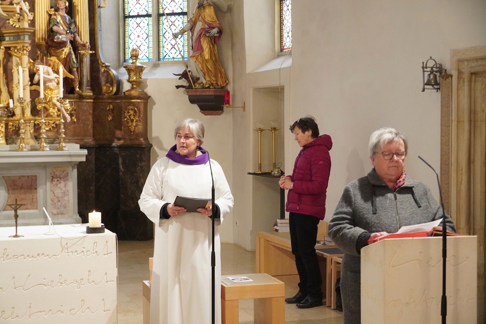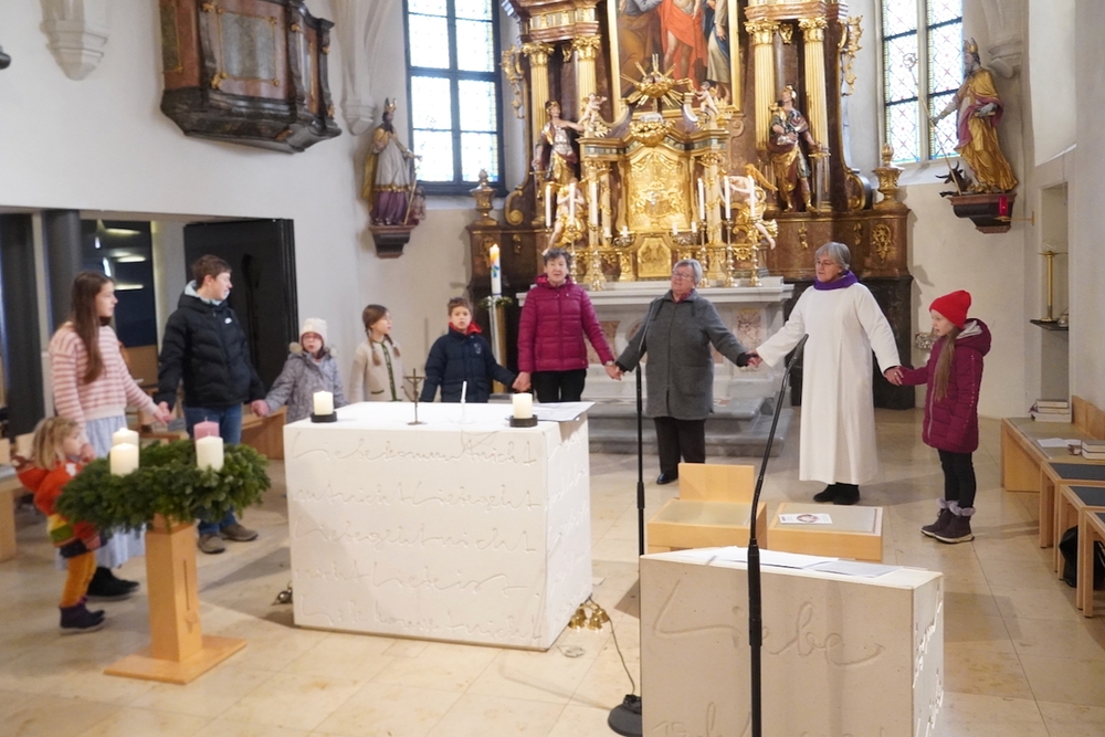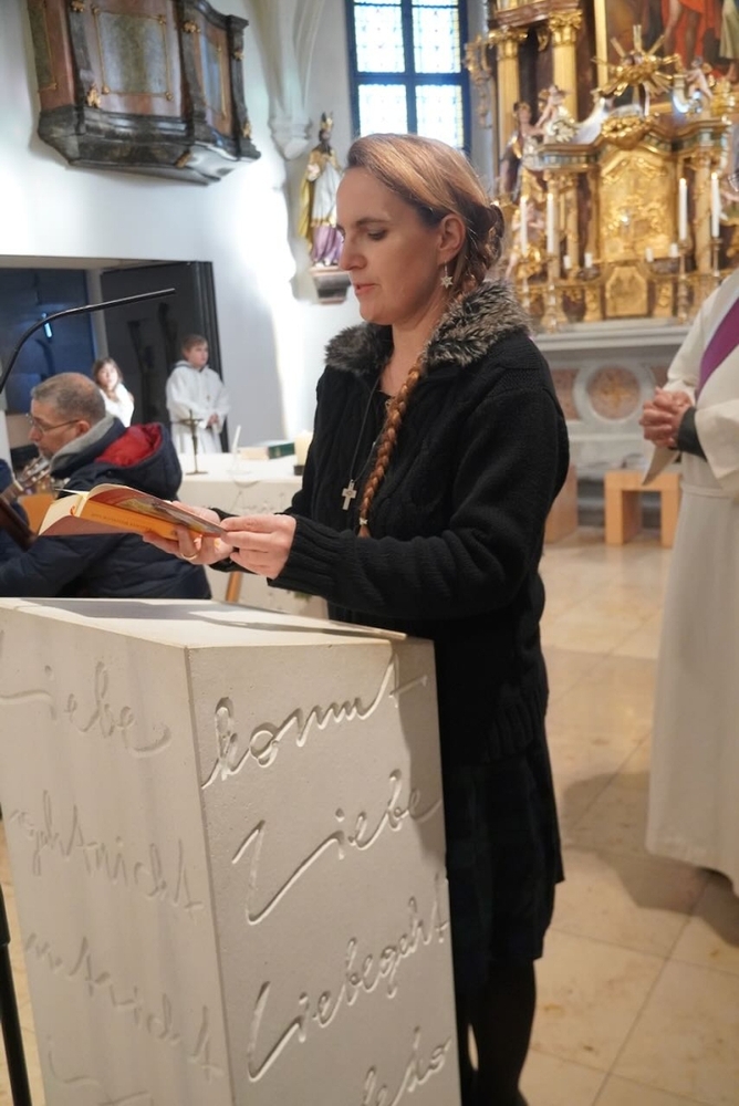 Bei der Wort-Gottes-Feier am Sonntag sprach WGF-Leiterin Christa Habith in Bezug auf Jesaja von der uralten Sehnsucht der Menschen nach Frieden und Gerechtigkeit. Nur durch Umkehr, siehe Johannes der Täufer (Mt 3, 1-12), kann Veränderung geschehen und Gott in uns ankommen. Umkehren heißt Haltungen überdenken, Altes verlassen und die Herzen öffnen.