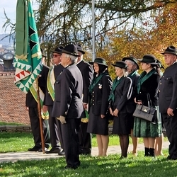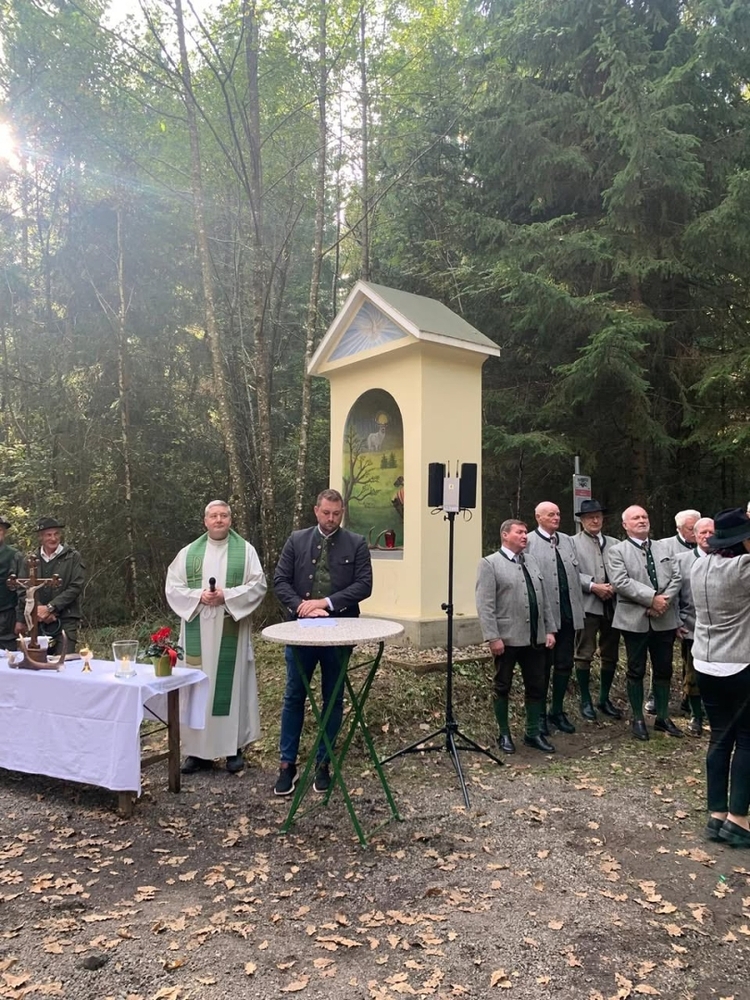 Die Rollenverteilung war ausgewogen. Von den Jägern der Jagdgesellschaften kamen die Grußworte, die gesprochenen Teile der Messe und die Einladung zum Zusammensein mit einer kräftigenden Bewirtung nach der Feier. Der Bürgermeister der Gemeinde Premstätten erzählte von den Leistungen anlässlich der Renovierung und von der Geschichte des Jägerkreuzes, und schließlich segnete in seinem Beisein Pfarrer Claudiu Budău den neu gestalteten Bildstock. Der Pfarrer führte dann durch den Ruf der Jagdhornbläser in die Geheimnisse des Waldes ein und sprach sehr lobend und begeistert in seiner Predigt über das Engagement der Jäger. Der Steirische Jägerchor gab mit der Neuberger Jagdmesse der Feier musikalischen Glanz.