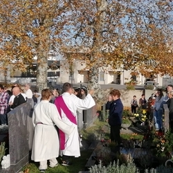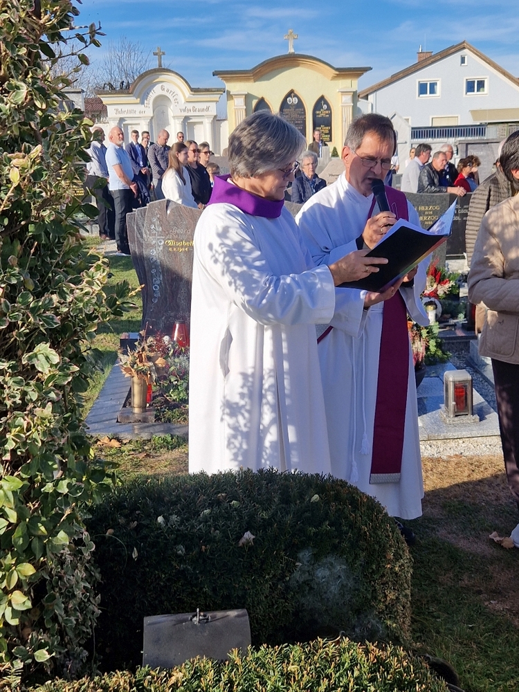 Bei strahlendem Herbstwetter segneten Diakon Franz Habith und Wort-Gottes-Feier- Leiterin Christa Habith die Gräber auf unserem Friedhof.