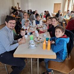 Zum anschließenden Pfarrkaffee lud der Kirchenchor herzlich ein und freute sich über viele Gäste, die das Zusammensitzen bei Kuchen und Kaffee/Tee in netter Gemeinschaft - auch mit Diakon Johannes und seiner Familie - sehr genossen. Ein netter Ausklang eines besonderen Vormittags!