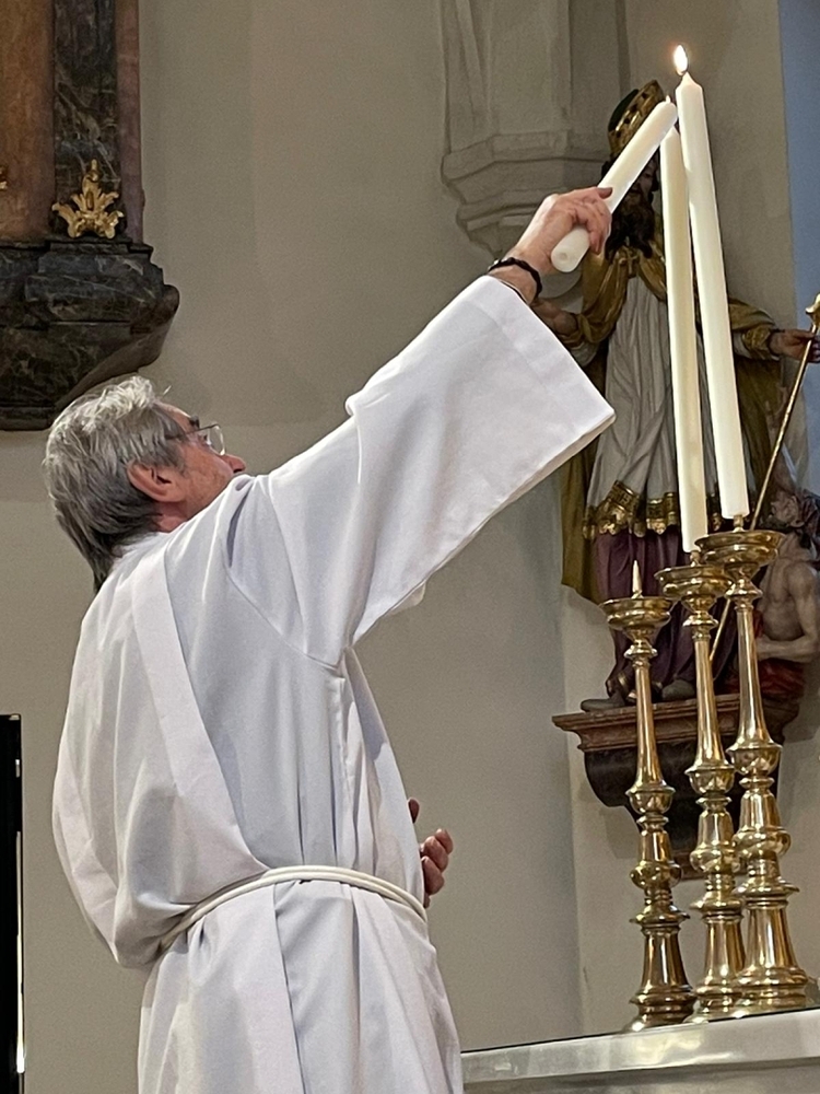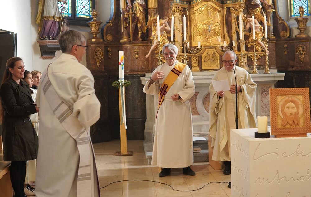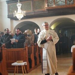 Nach dem feierlichen Einzug betonte Vikar Norbert in der Begrüßung, wie schön es ist, dass Johannes neben vielen anderen ehrenamtlichen Tätigkeiten (Kantor, Organist …) nun auch den Dienst des Diakons ausüben wird.