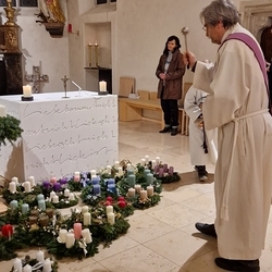 Diakon Michi Zepf segnete im Rahmen von Wort-Gottes-Feiern um 18 Uhr in der Pfarrkirche und um 19 Uhr in der Kaiserwald-Kapelle die herbeigebrachten Adventkränze.