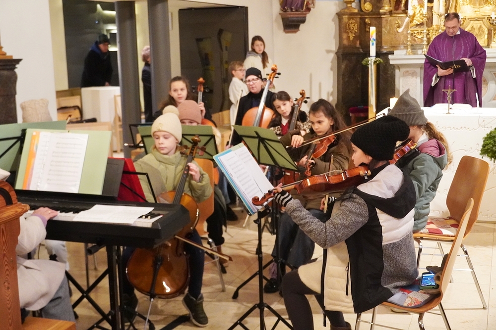 „So wie man eine Violine vor dem Spielen stimmen muss, dass sie gut klingt, so sollten auch wir uns auf Weihnachten gut einstimmen.“ Diesen Vergleich zog Vikar Gerhard Hatzmann in seiner Predigt. Es geht darum, leise zu werden und die feinen Töne wahrzunehmen, sodass die Freude aufs „Christkind“ im Herzen erklingen kann.