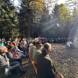 Alle Anwesenden lauschten gebannt im Rund unter herbstlicher Sonne und fallenden Blättern und bekamen in verschiedenen Gleichnissen versteckt für „ihre Premstättner Natur“ - speziell für den Kaiserwald - die Aufgaben und die Verantwortung zugeteilt. Die geleistete Spende für Speis und Trank geht an das Sozialprojekt der Gemeinde „Und das Christkind gibt es doch!“.