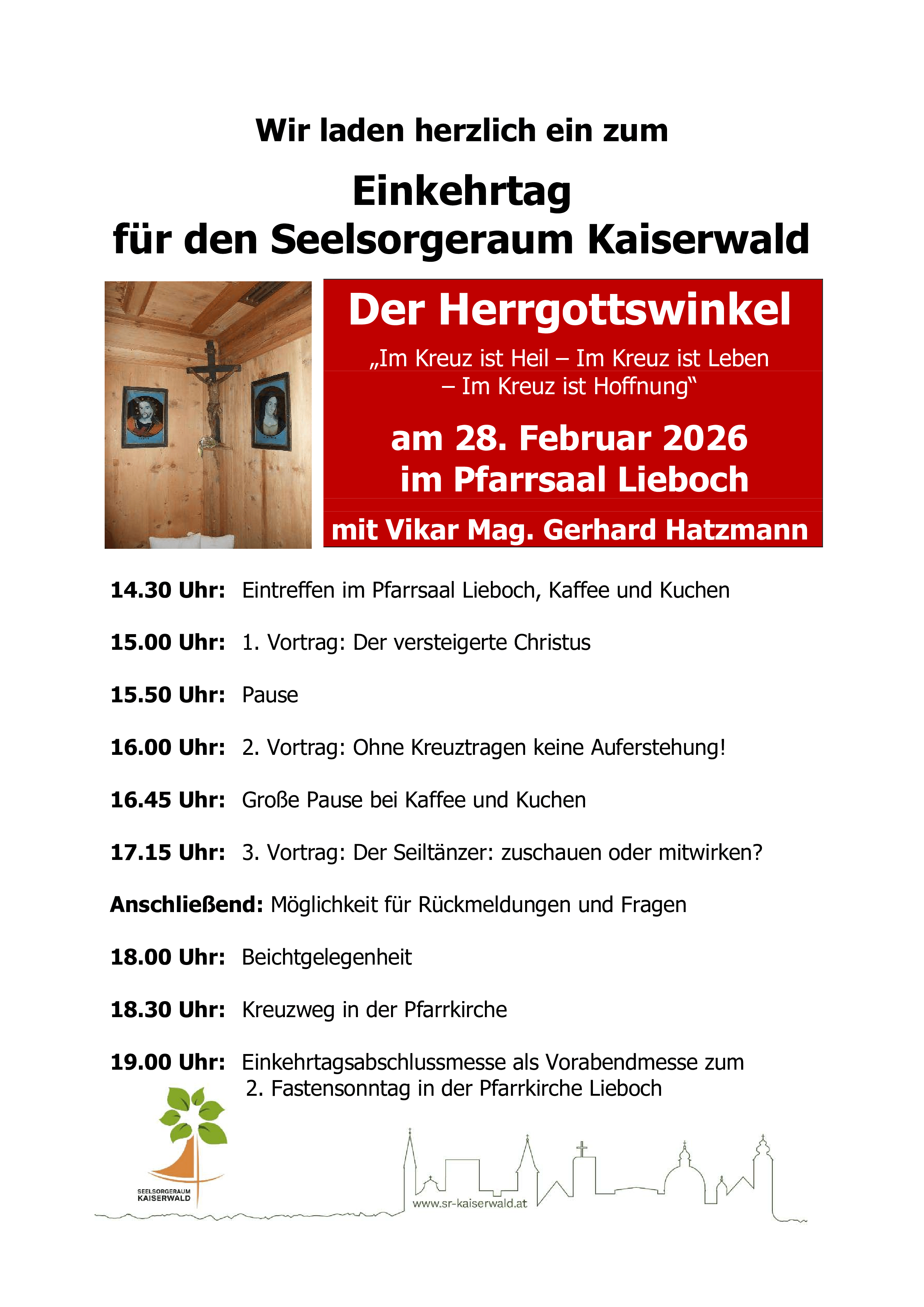 Samstag, 28. Februar 2026, im Pfarrsaal LIEBOCH mit Beichtgelegenheit