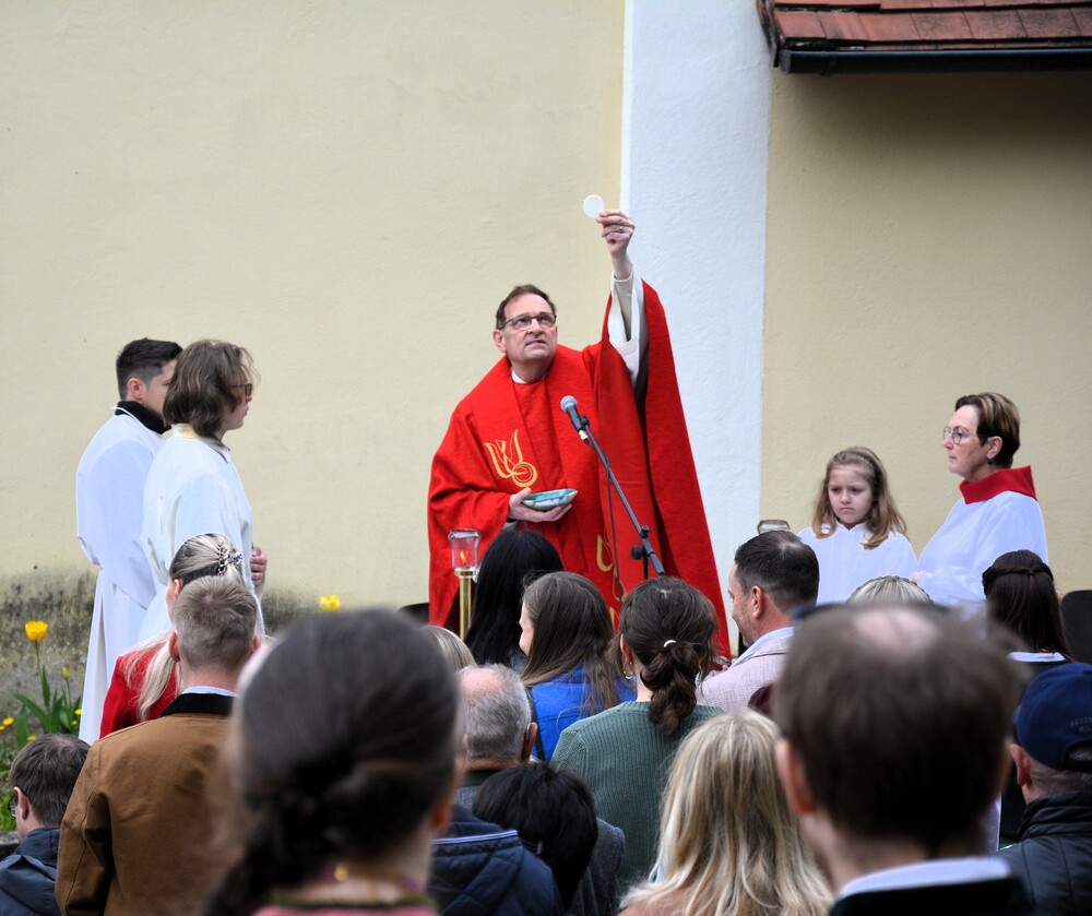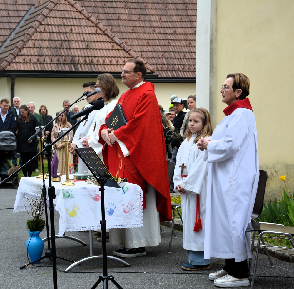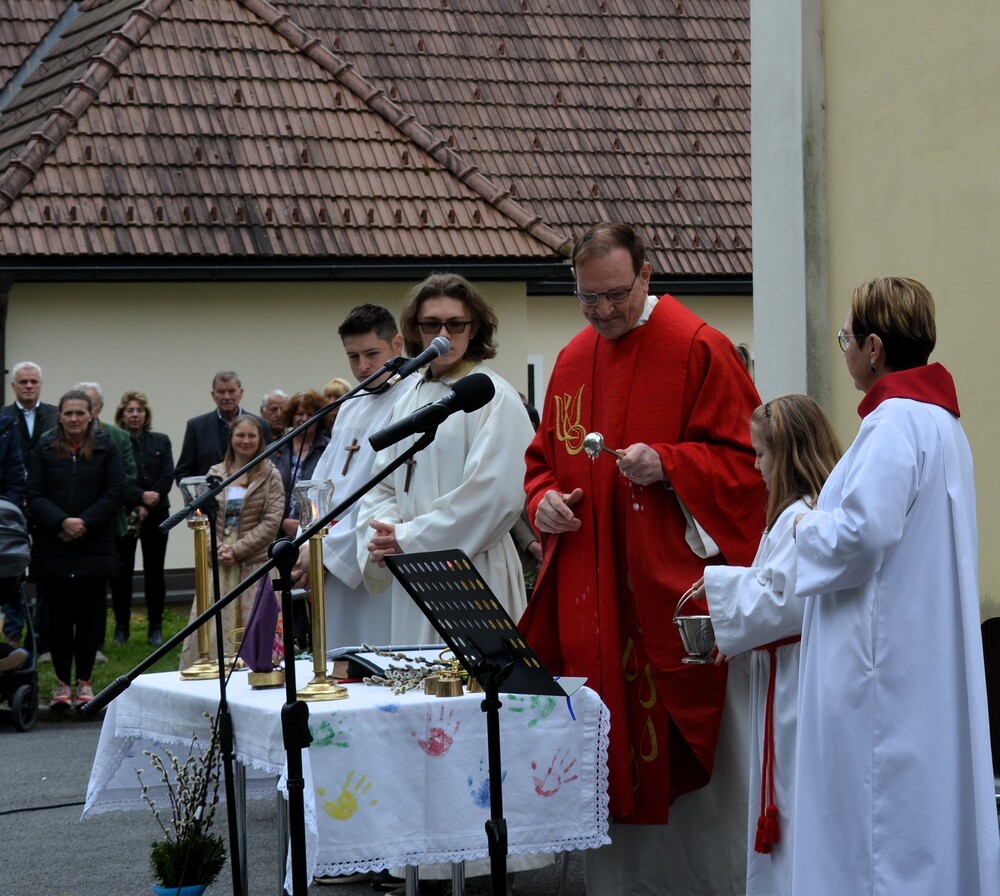 Palmweihe mit Vikar Gerhard Hatzmann am Kirchplatz