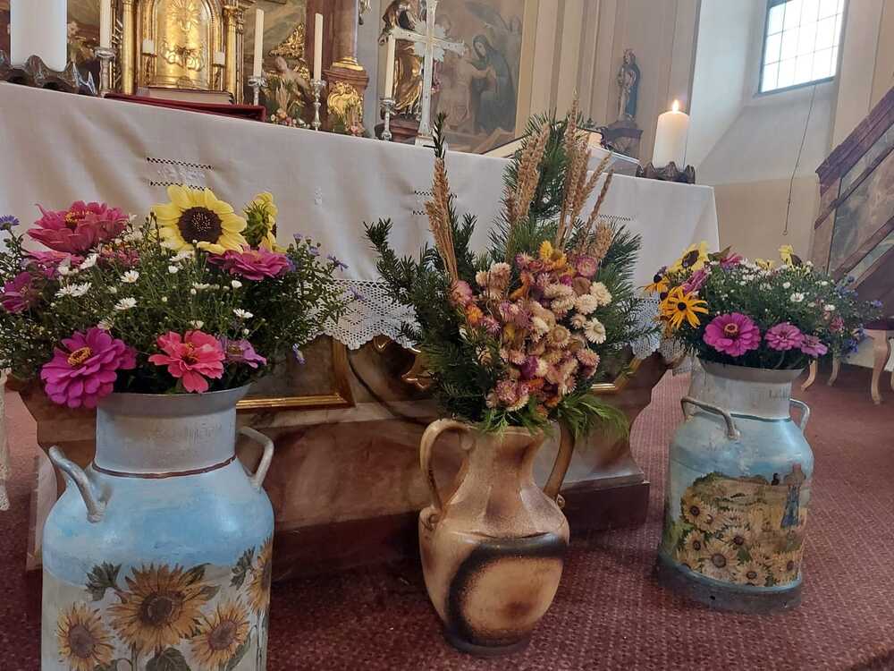 Jeder Gottesdienstbesucher bekam ein kleines Erntesträußchen überreicht.