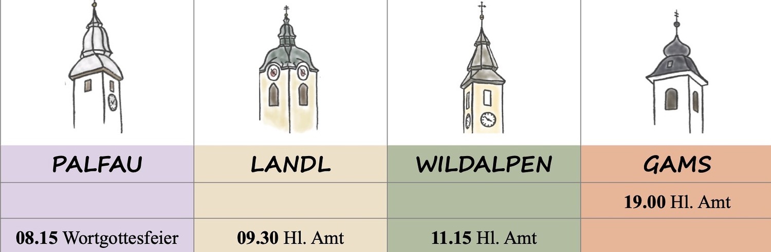 Hinweis: Ab 1. Jänner 2026 feiern wir das Hl. Amt (ebenso auch die Wortgottesfeiern) am Sonntag um 08.00 Uhr. Es ist dadurch für mich wesentlich stressfreier, möglichst pünktlich um 09.30 Uhr zum Hl. Amt in Landl zu sein. Danke für Euer Verständnis dafür!! Euer Pater Engelbert
